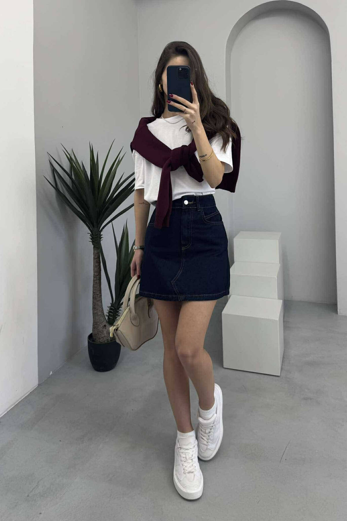 HIGH SPLIT LONG DENIM WOMEN SKIRT WHITE-E BARDHE