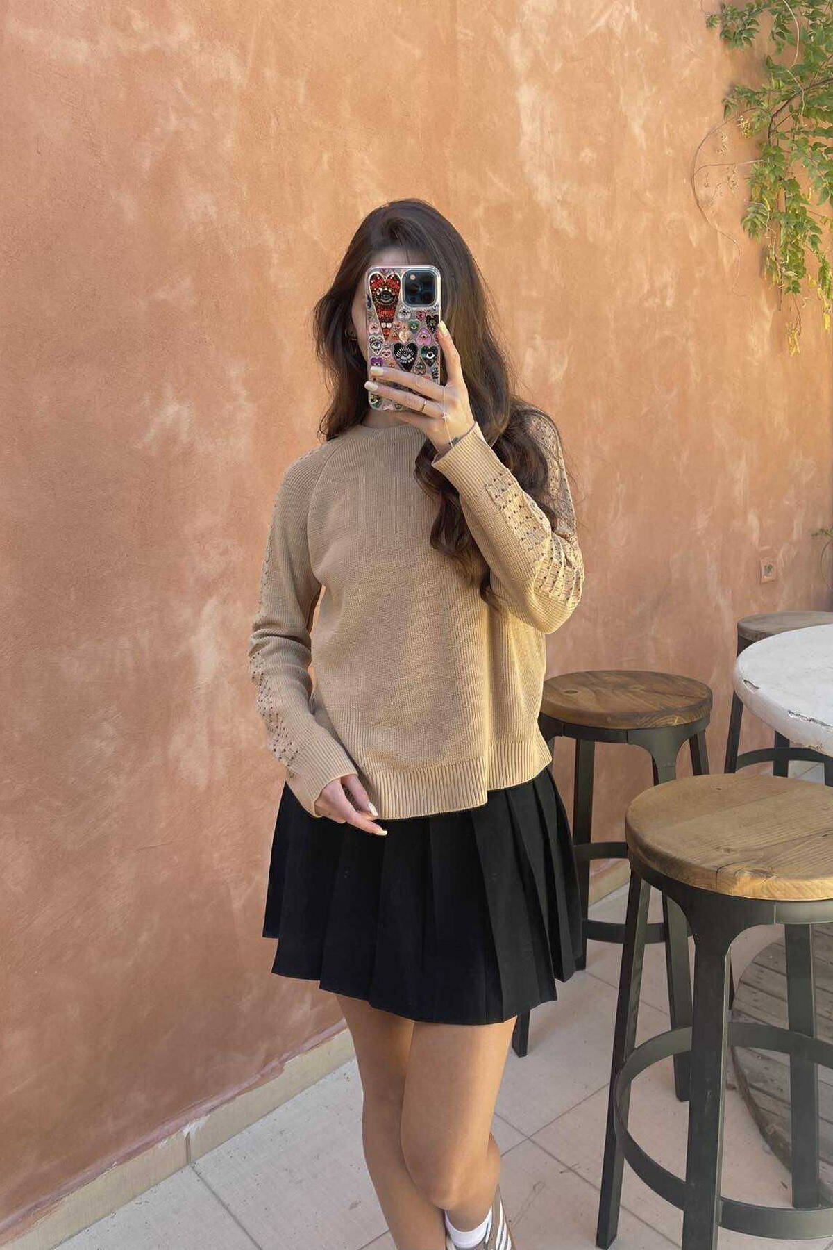 ONE COLOR SIMPLE WOMEN SWEATER LIGHT BROWN/KAZB