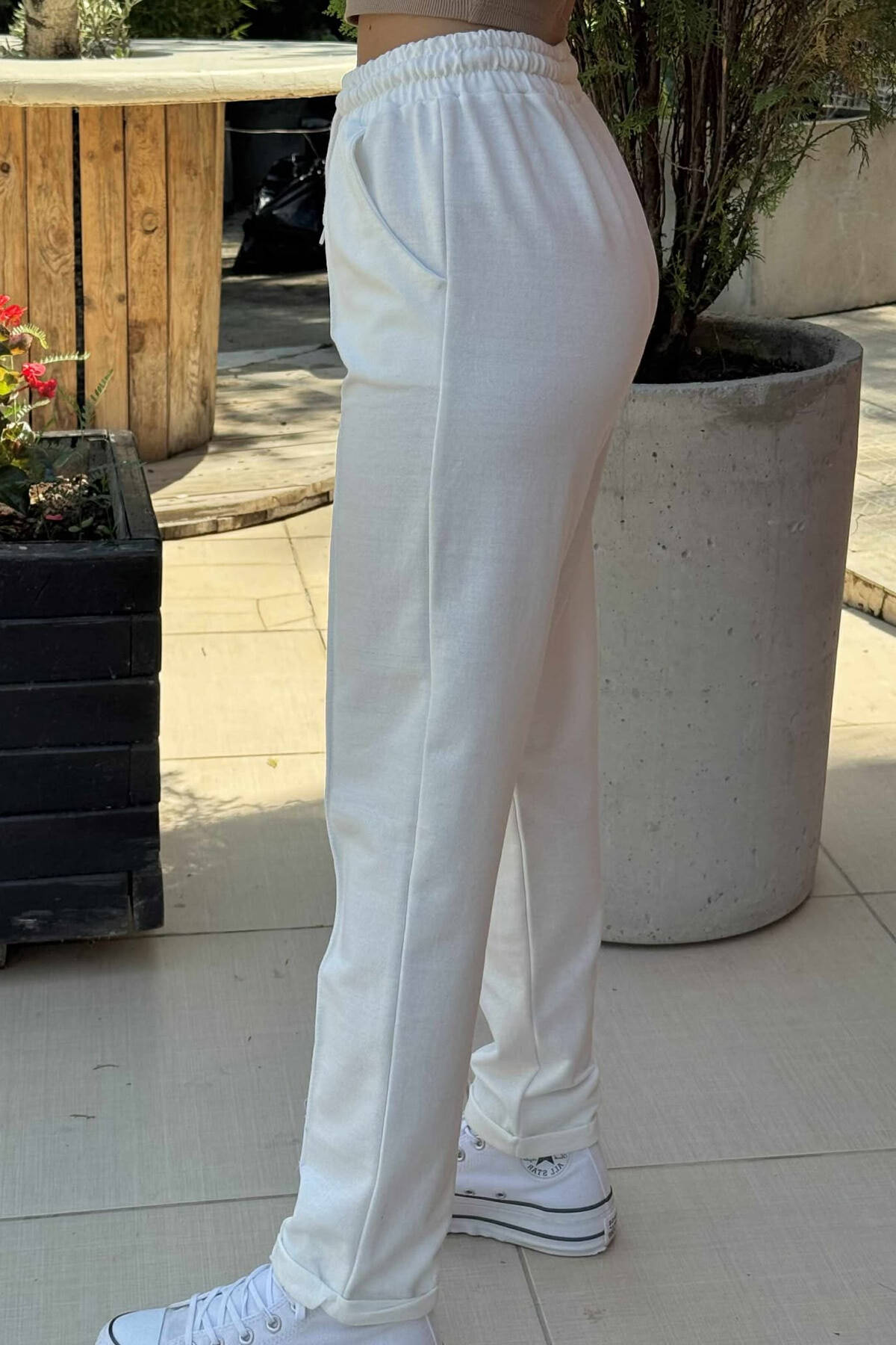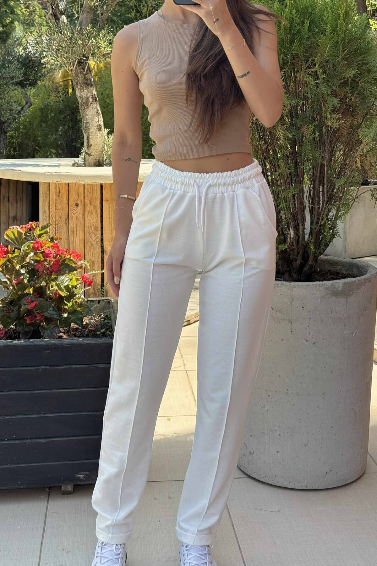 ONE COLOR SIMPLE WOMEN SWEATPANTS WHITE-E BARDHE