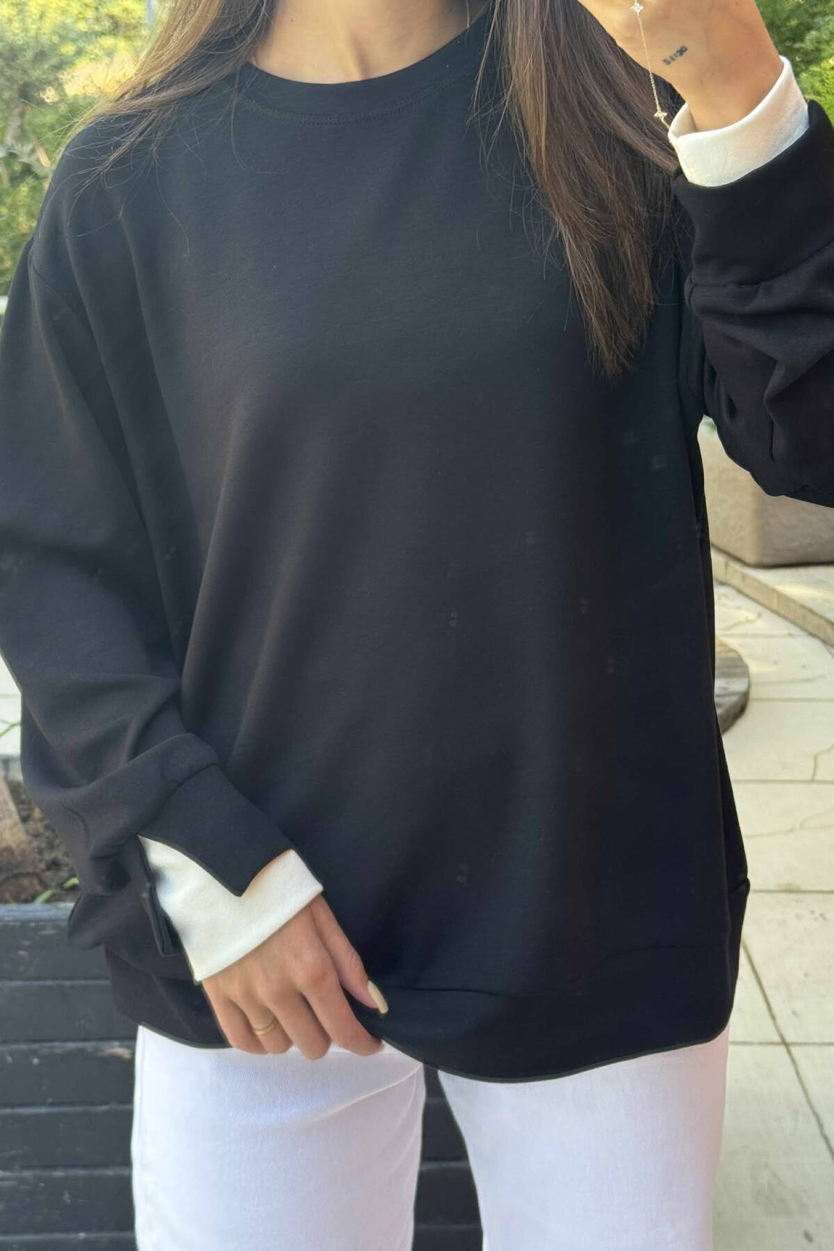 ONE COLOR LACING DETAIL WOMAN SWEATSHIRT WHITE-E BARDHE