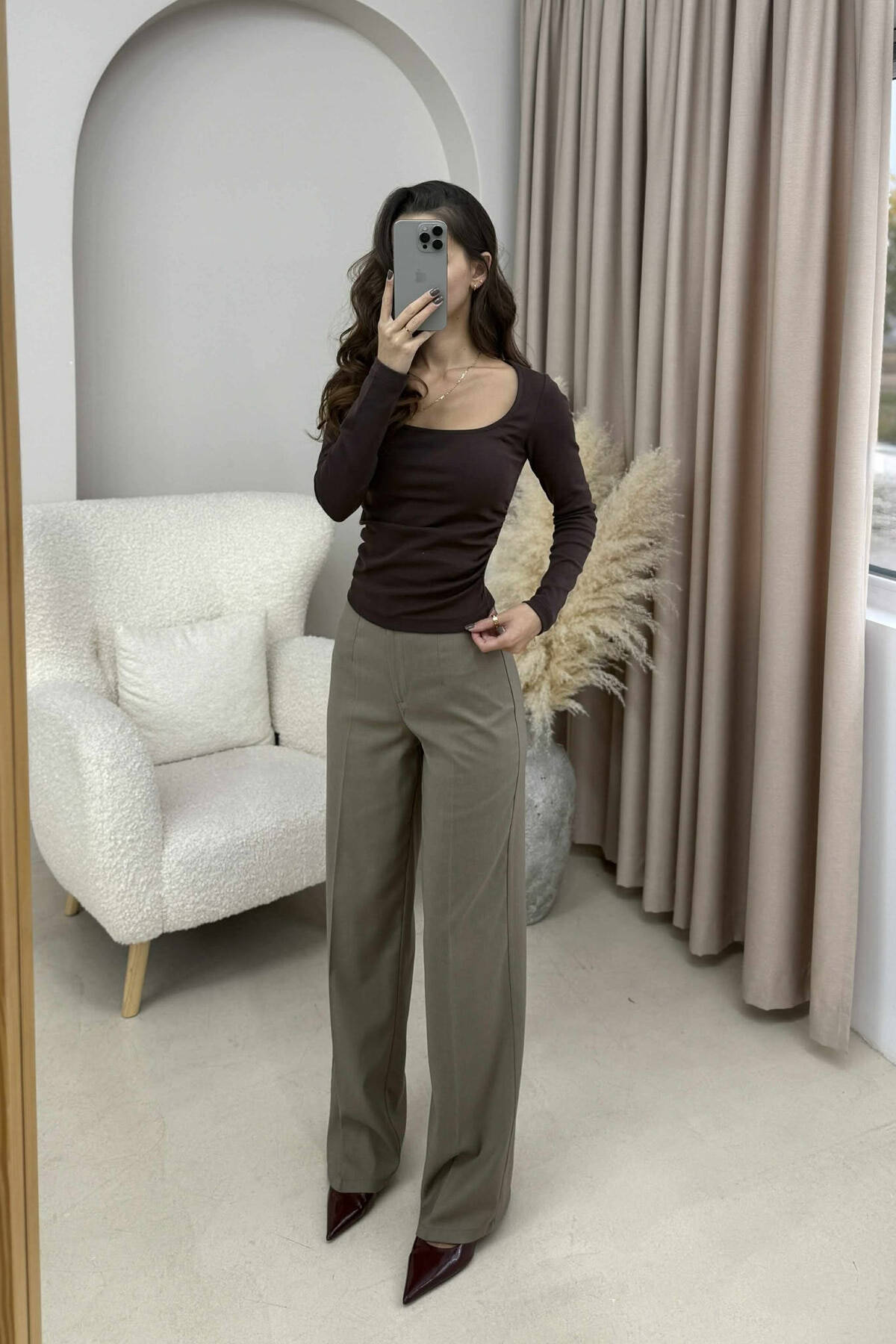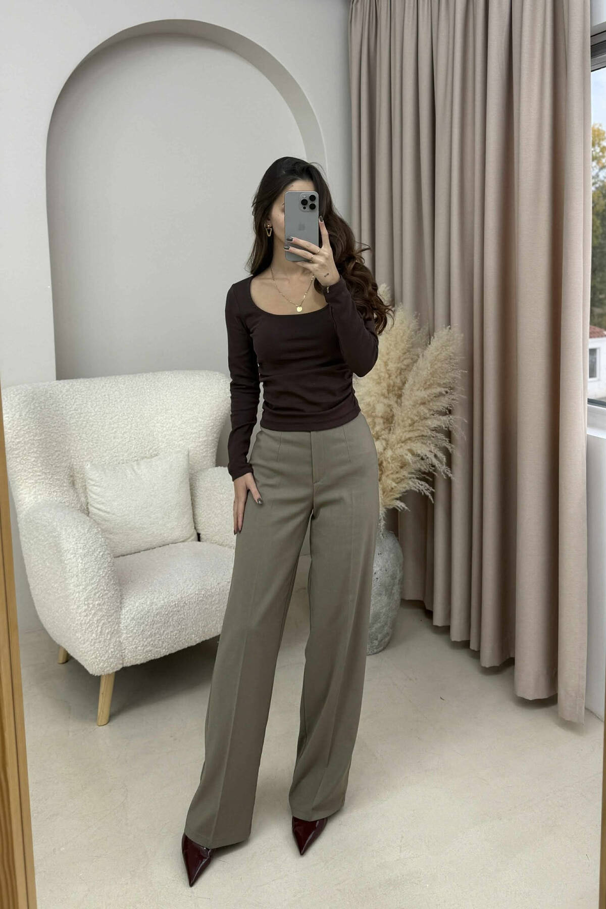 ROUND NECK SIMPLE WOMEN SWEATSHIRT BROWN/KAFE