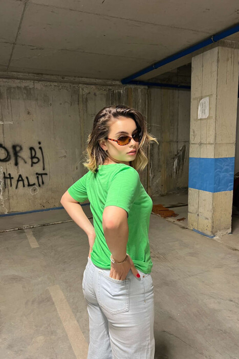 ONE COLOR SIMPLE WOMEN T-SHIRT GREEN/JESHILE