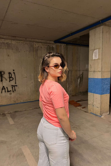 ONE COLOR SIMPLE ROUND NECK WOMEN T-SHIRT PINK/ROZE