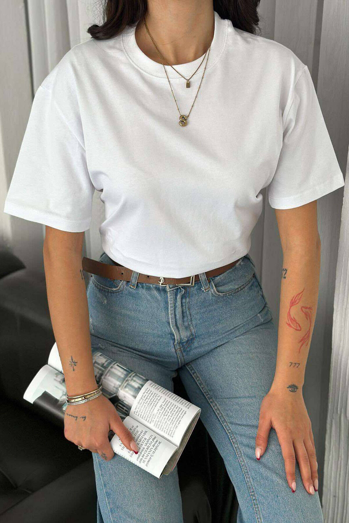 ONE COLOR SIMPLE WOMEN T-SHIRT WHITE-E BARDHE