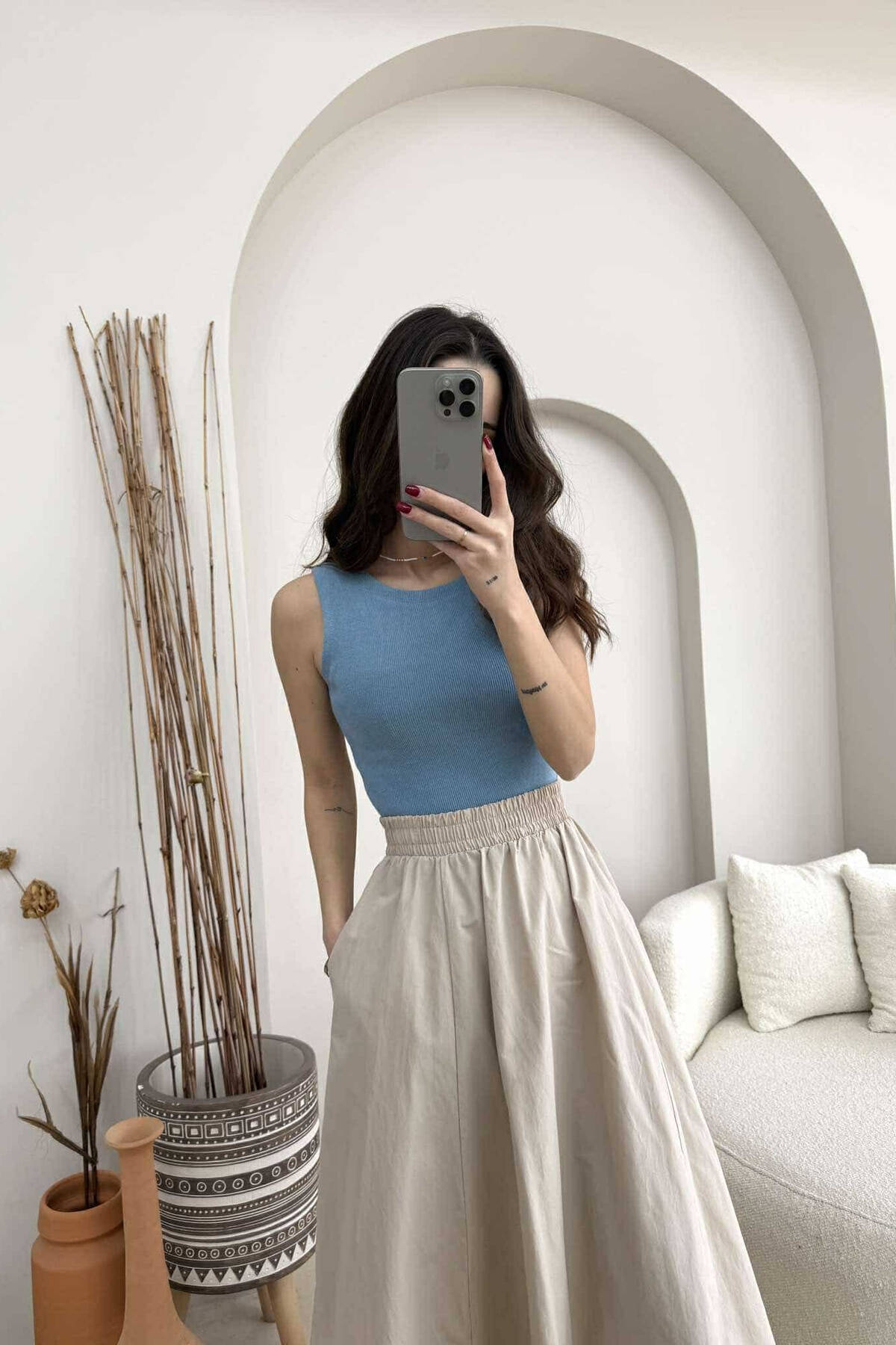 ONE COLOR HIGH NECK WOMAN TANK TOP CREAM/KREM