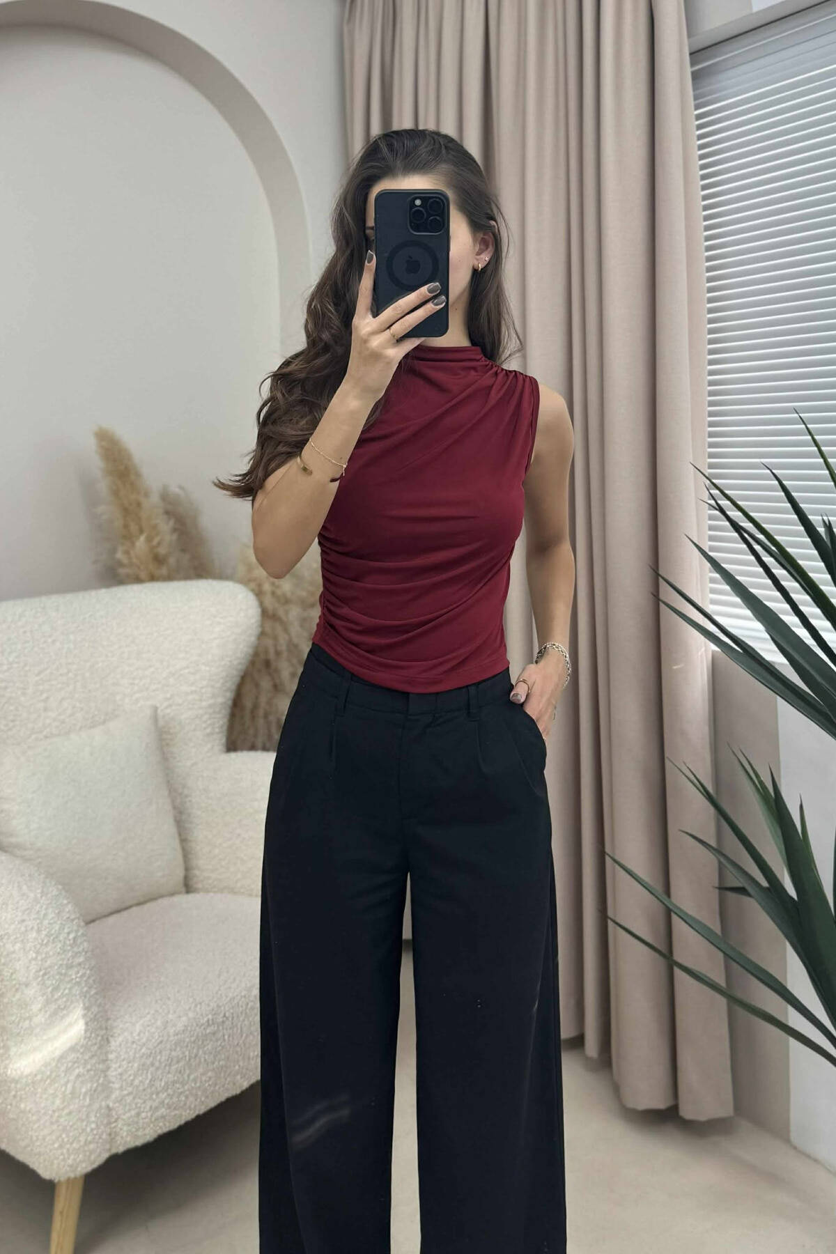 ONE COLOR SIMPLE WOMEN TANK TOP BURGUNDY/VISHNJE