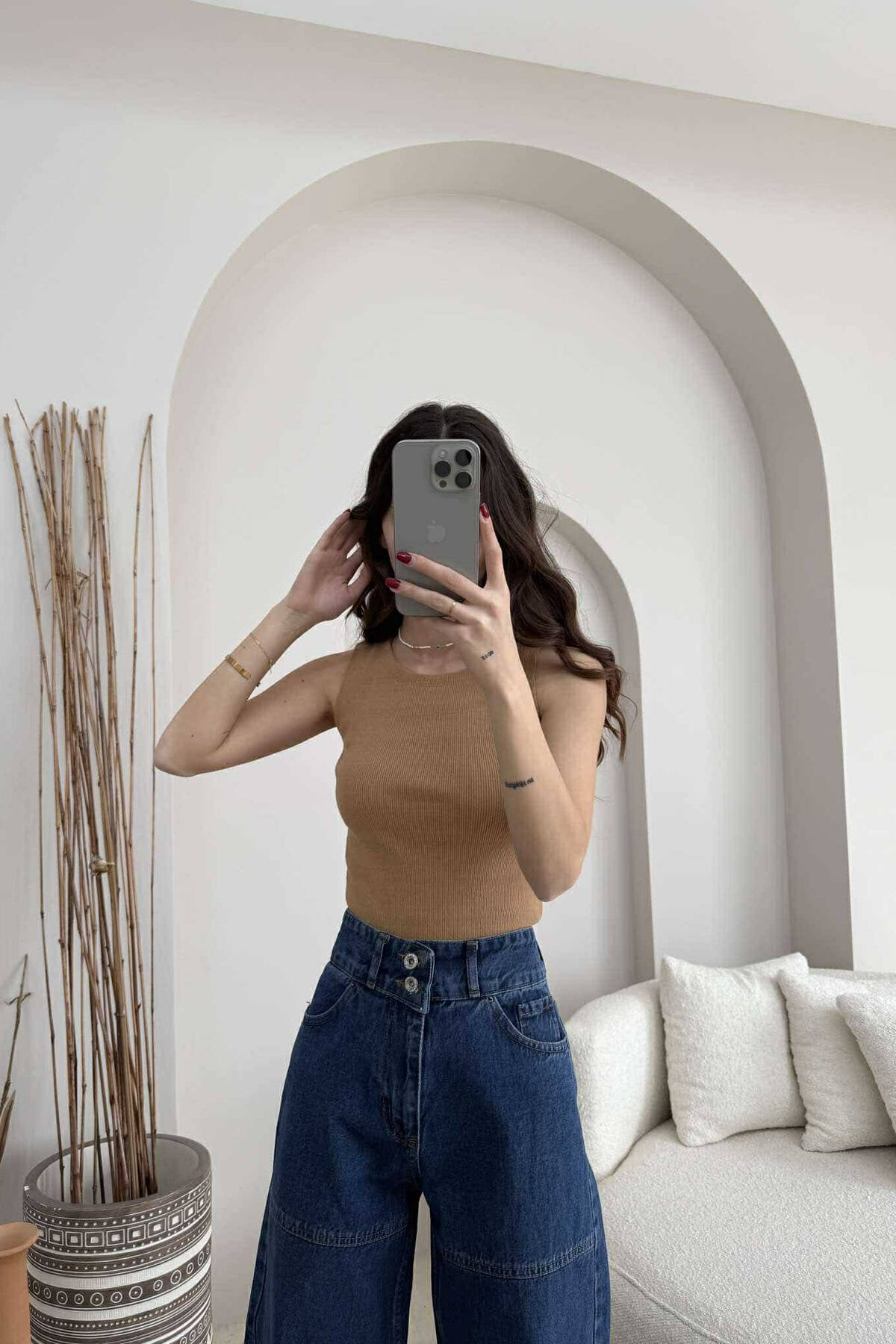 ONE COLOR SIMPLE WOMEN TANK TOP DARK BEIGE/BEZHE ERRET
