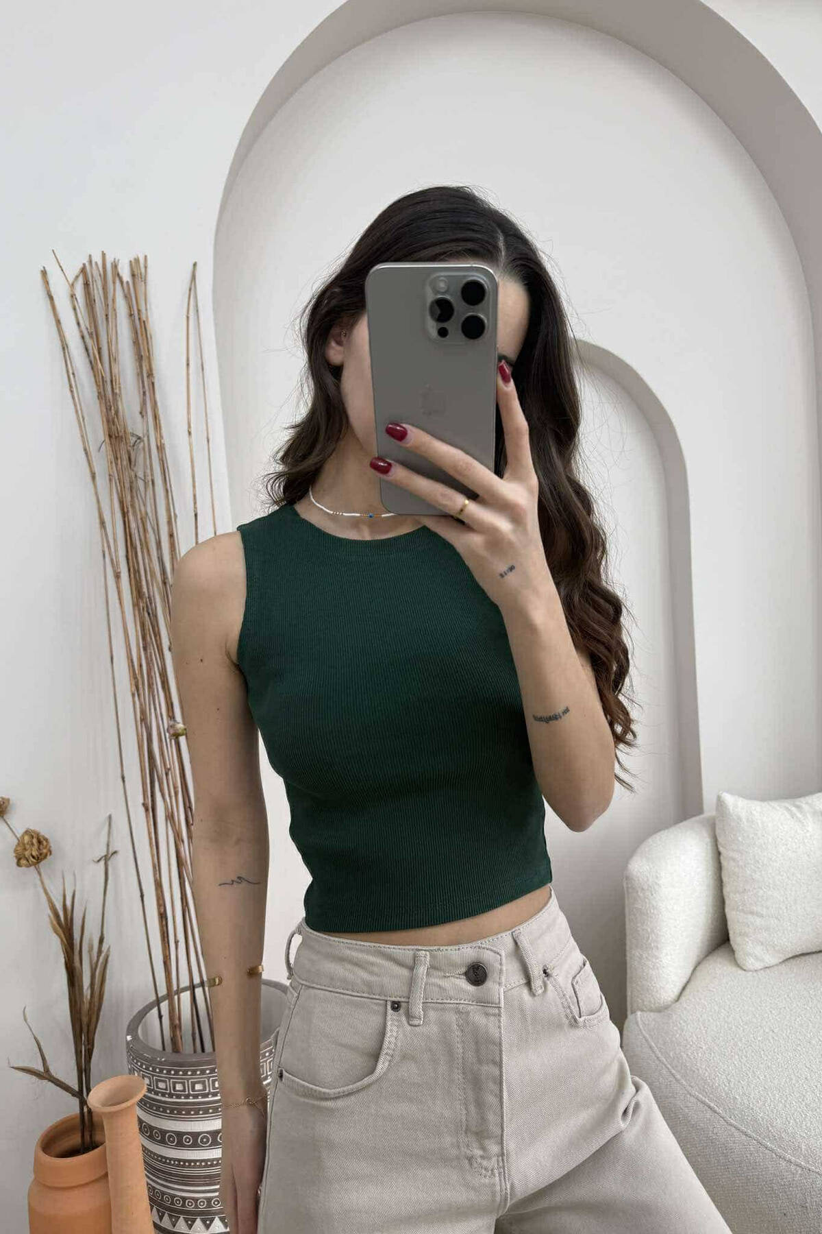 ONE COLOR HIGH NECK WOMAN TANK TOP CREAM/KREM