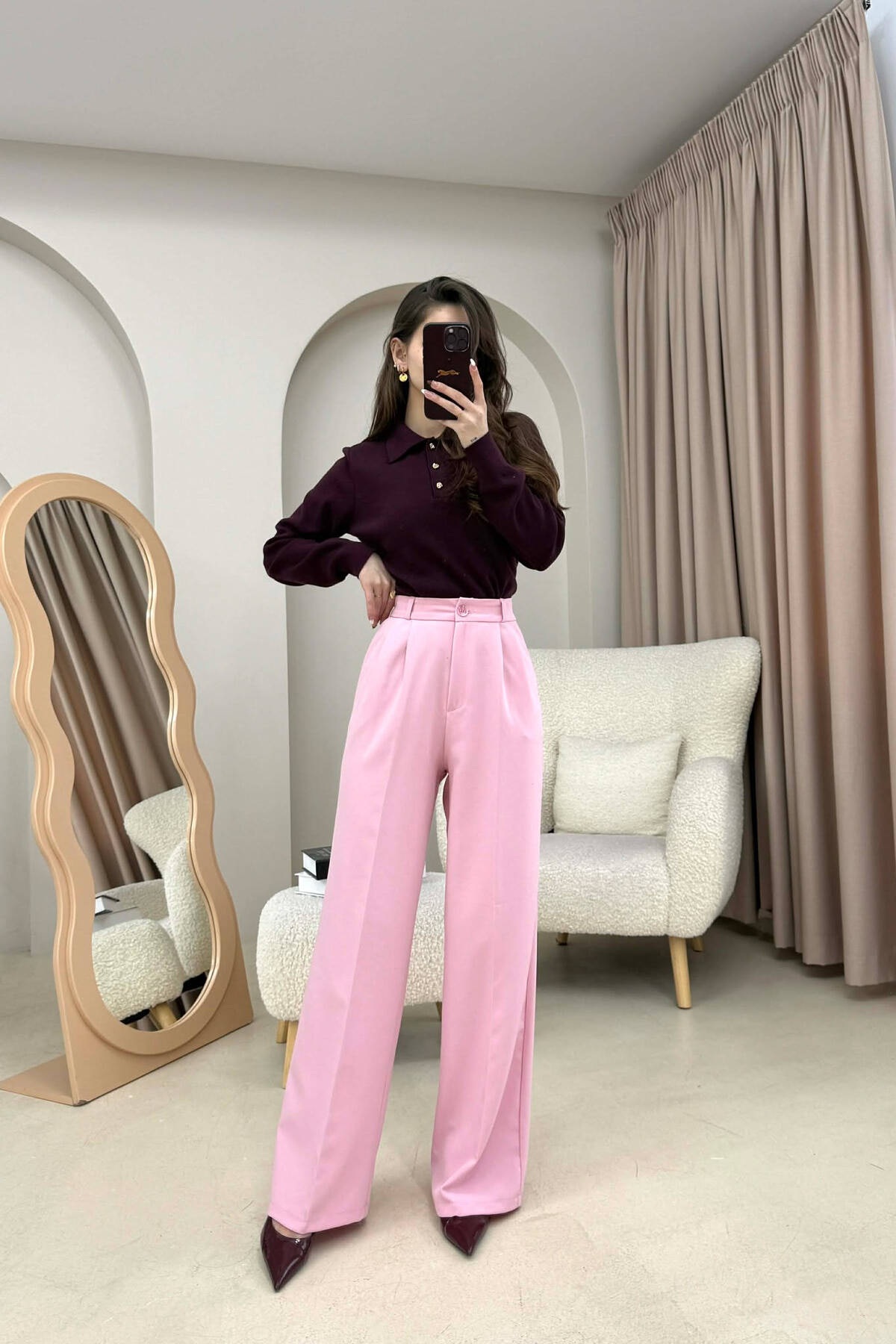 PANTALLONA TE GJERA PER FEMRA NE NGJYRE VISHNJE