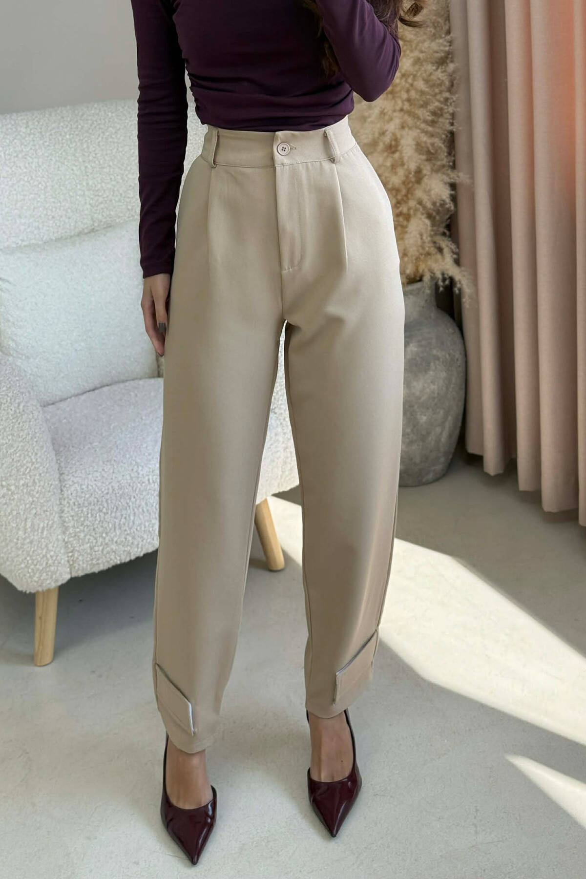 ONE COLOR SIMPLE WOMEN TROUSERS BEIGE/BEZHE