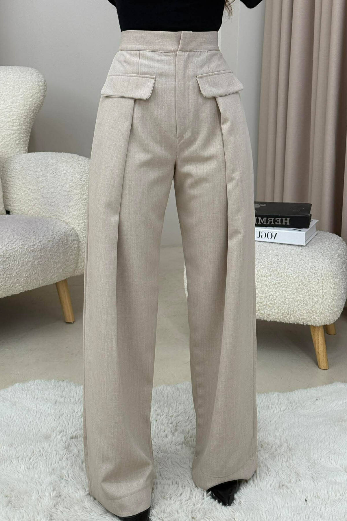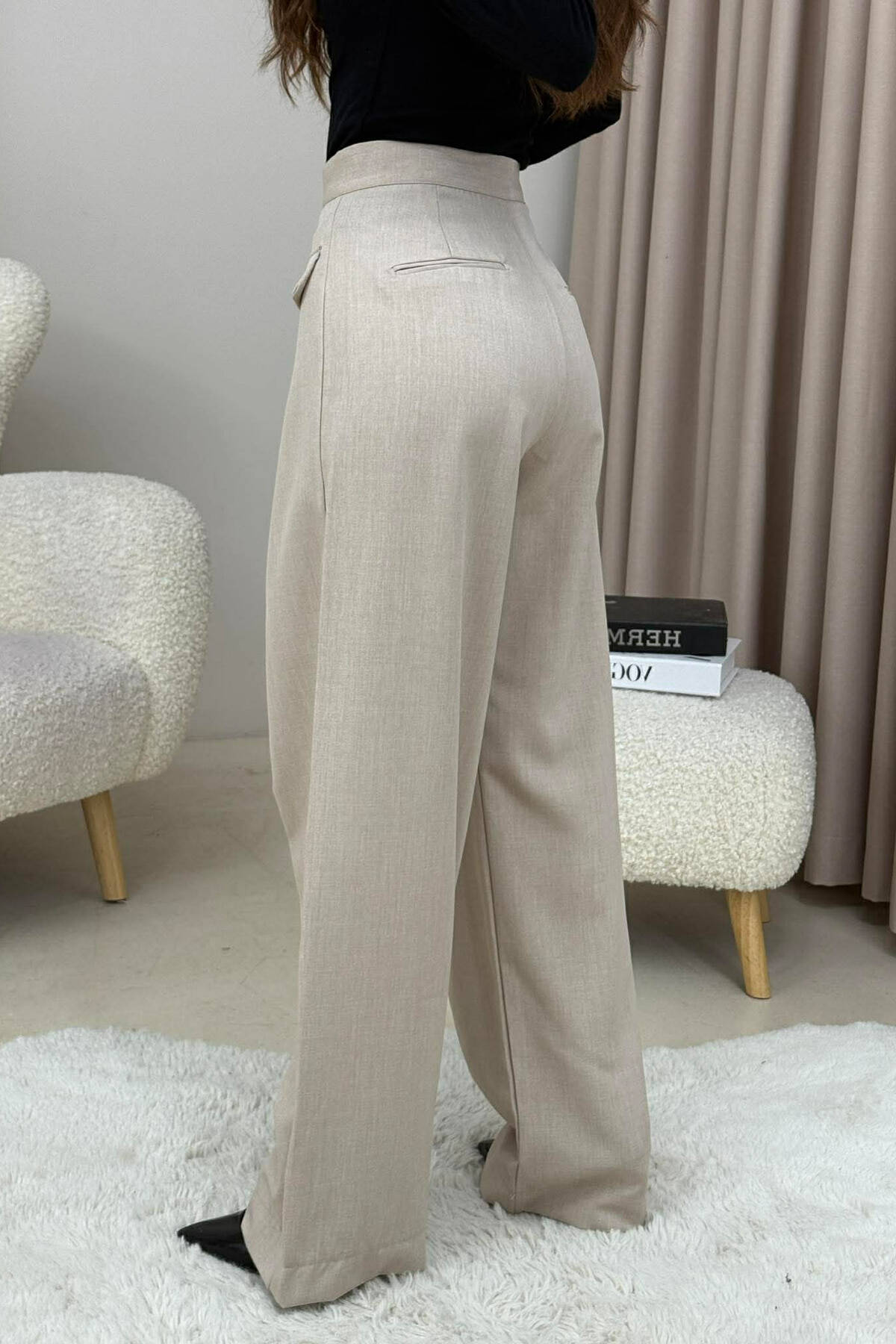 ONE COLOR BELT DETAIL WOMEN TROUSERS BEIGE/BEZHE