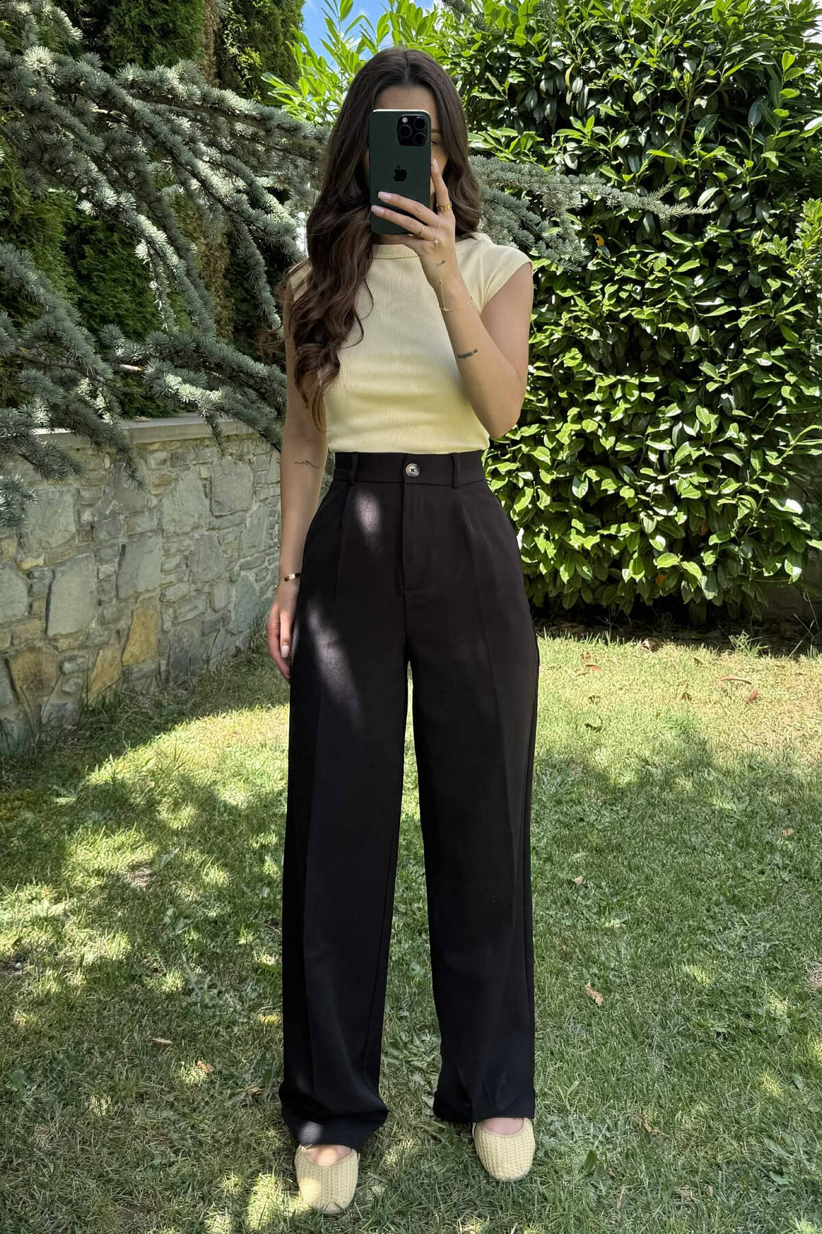 PANTALLONA TË THJESHTA ME BEL ELASTIK PËR FEMRA NË NGJYRËN E ZEZË