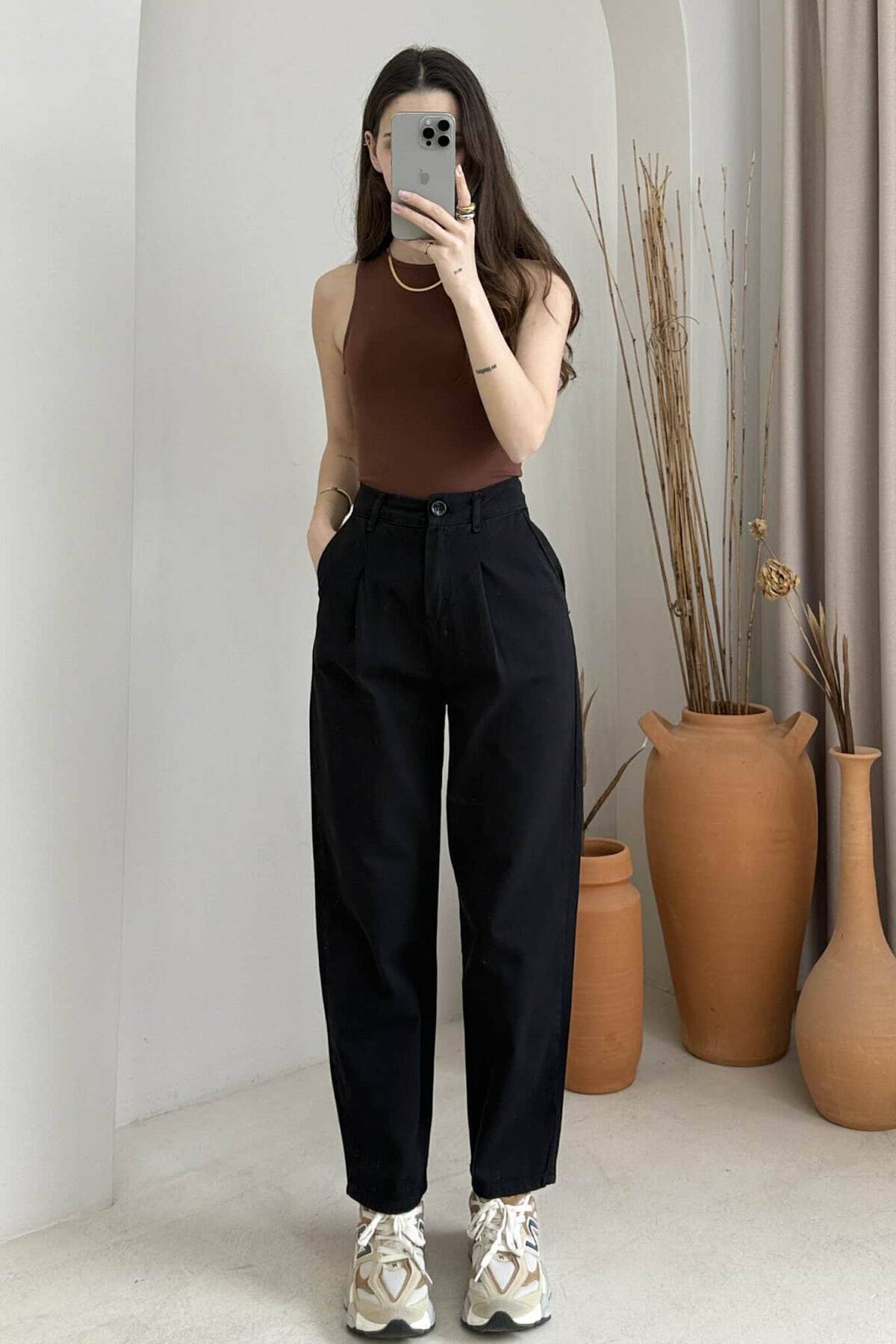 ONE COLOR SIMPLE WOMEN TROUSERS BLACK/ E ZEZE