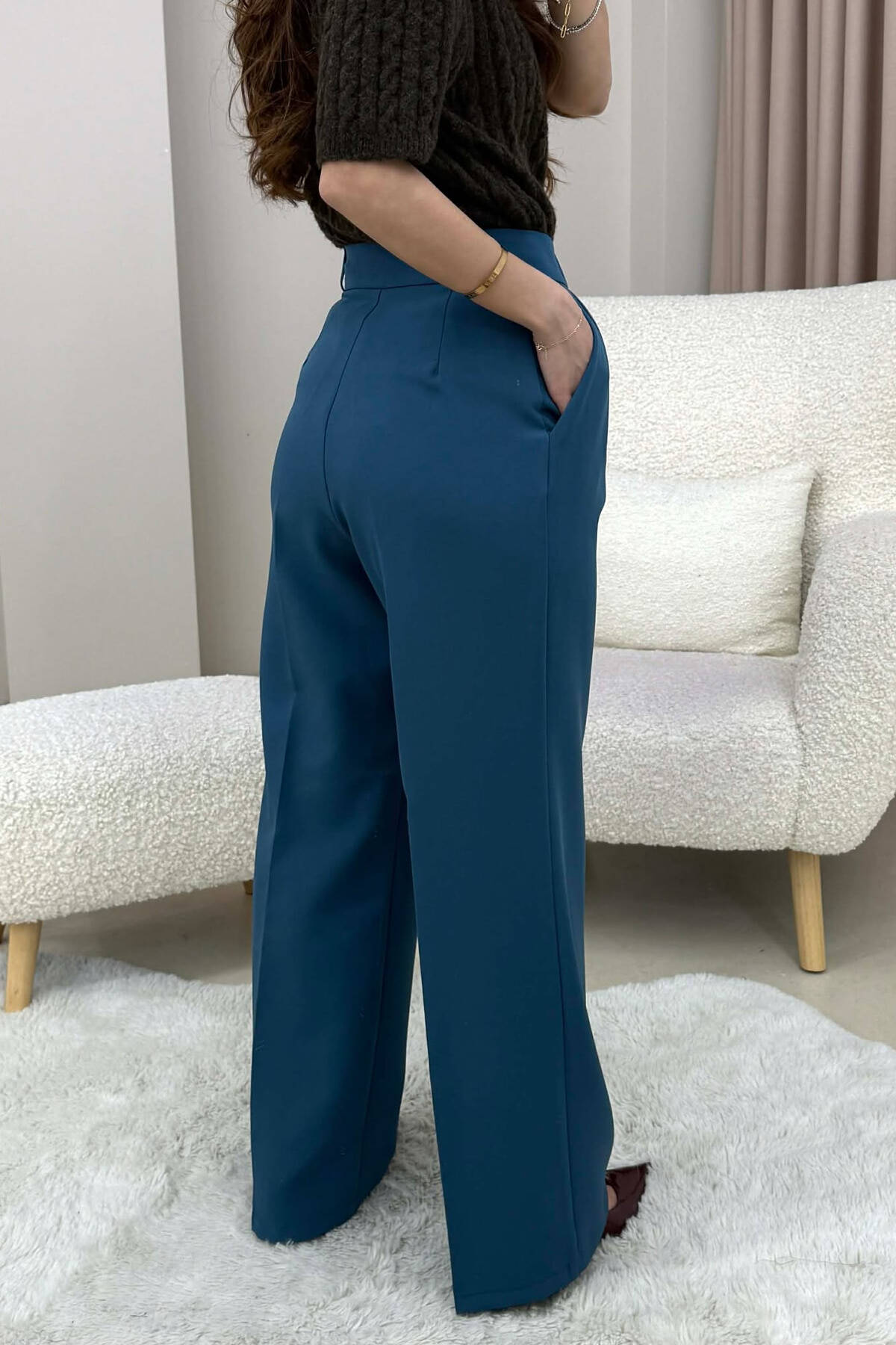 ONE COLOR SIMPLE WOMEN TROUSERS BLUE STONE/GK