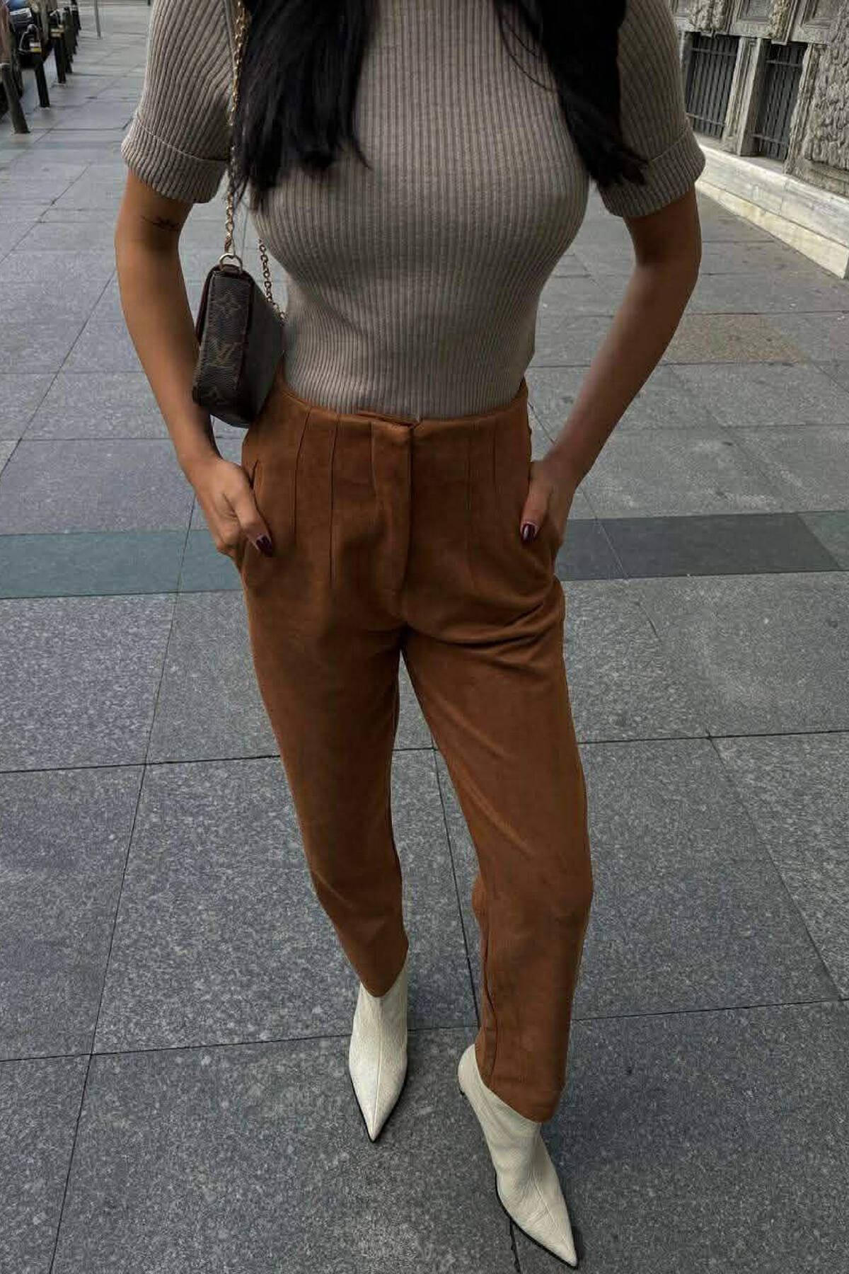 ONE COLOR SIMPLE WOMEN TROUSERS BROWN/KAFE
