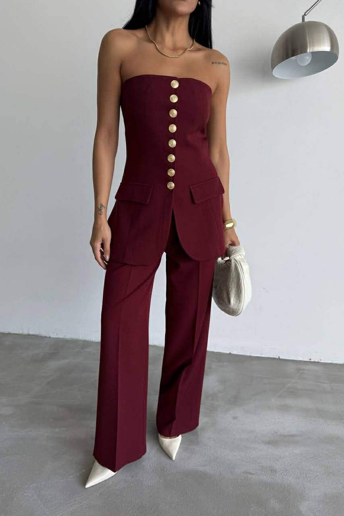 ONE COLOR SIMPLE WOMEN TROUSERS BURGUNDY/VISHNJE