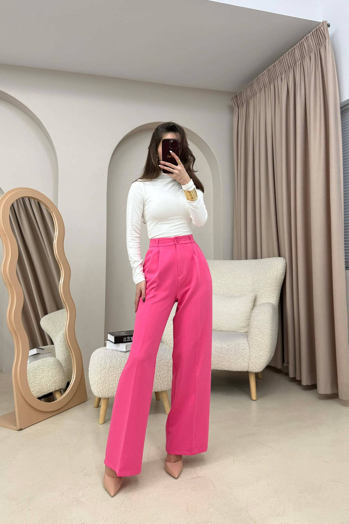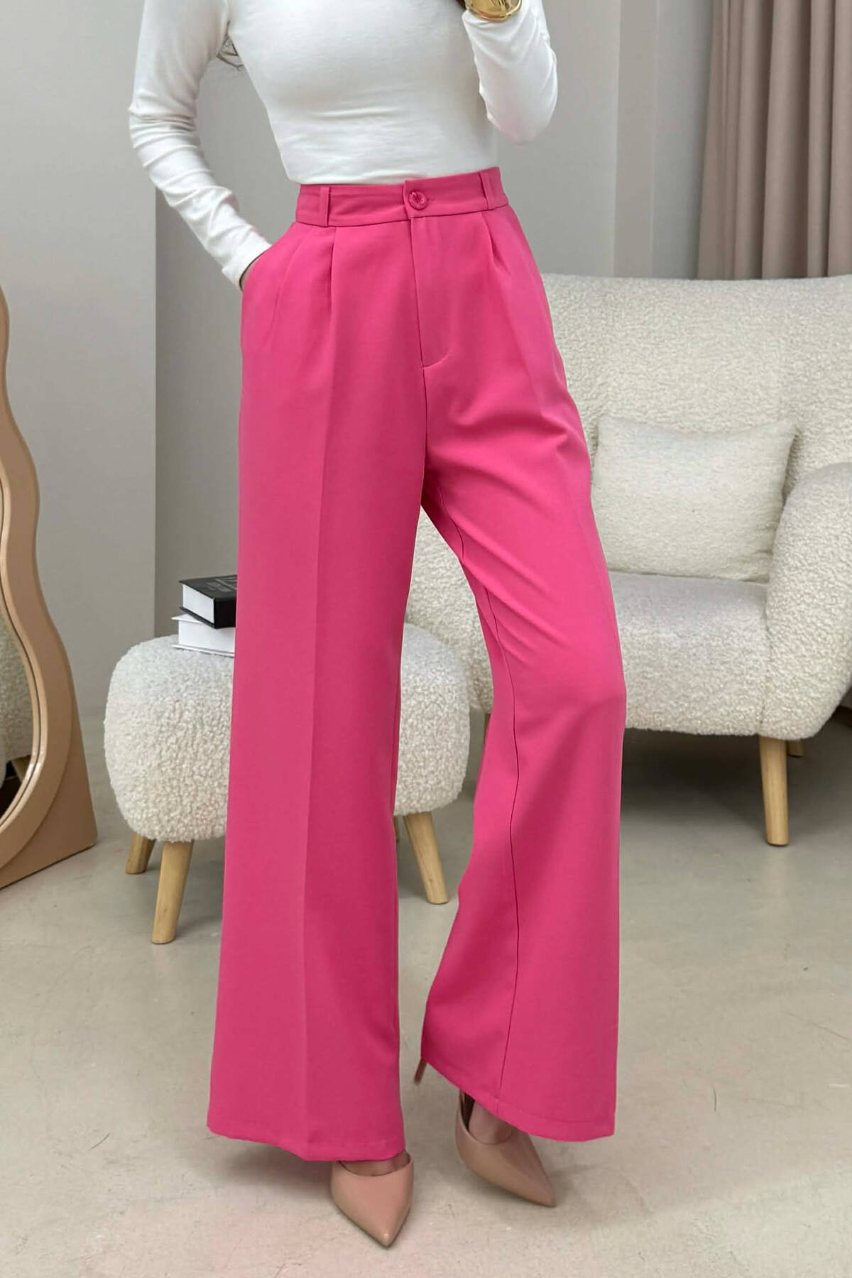 PANTALLONA TE GJERA PER FEMRA NE NGJYRE KREM