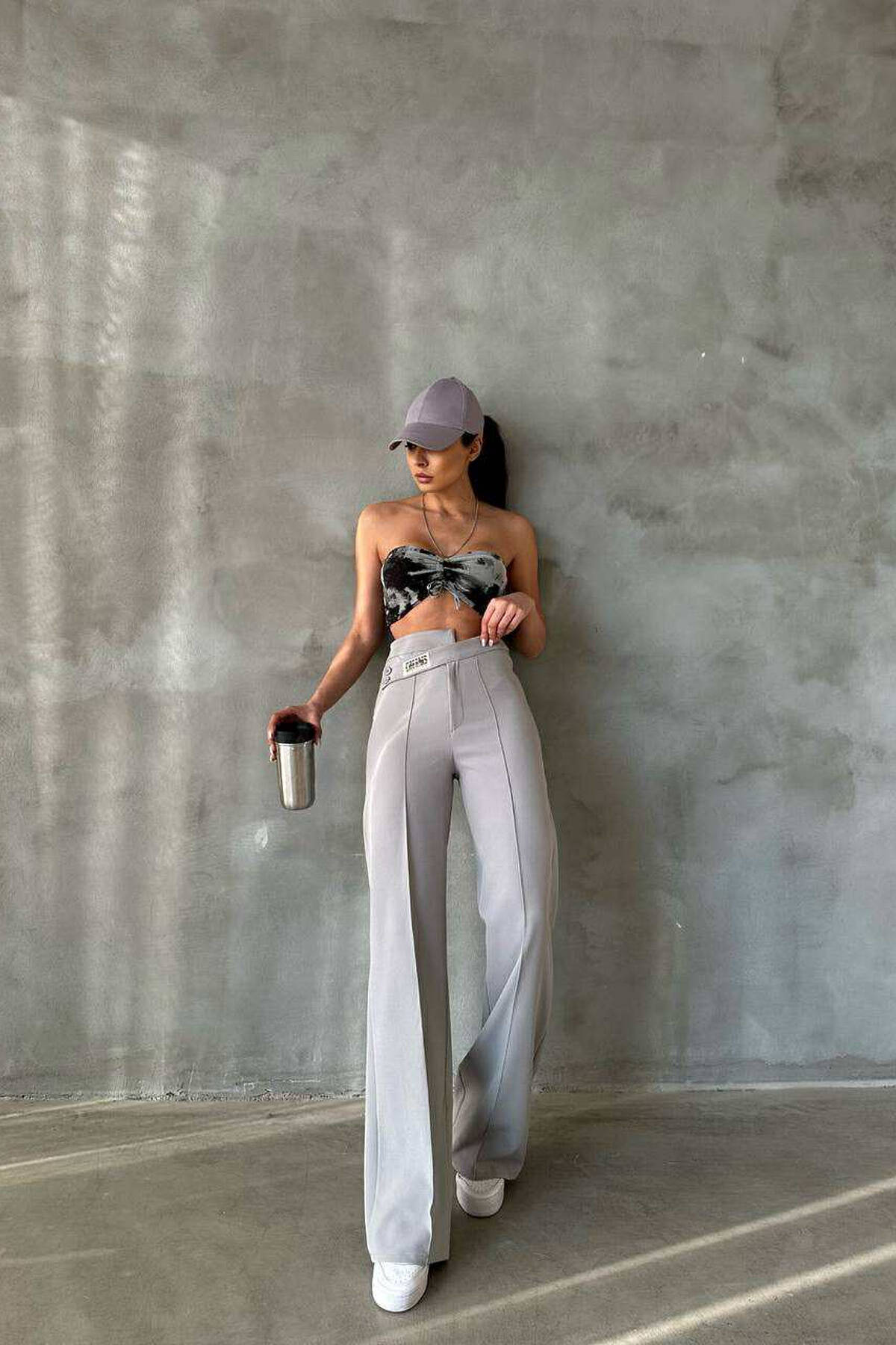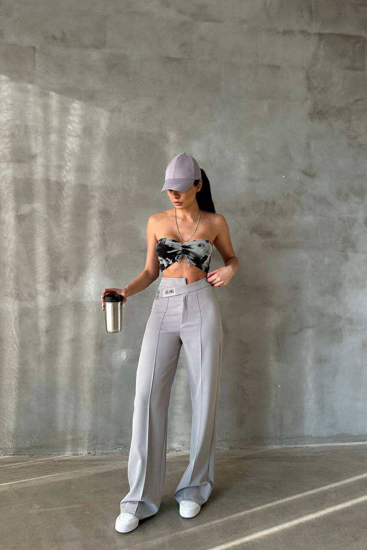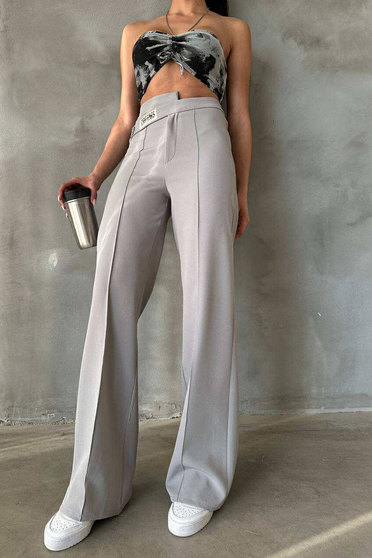 ONE COLOR SIMPLE WOMEN TROUSERS GREY/GRI