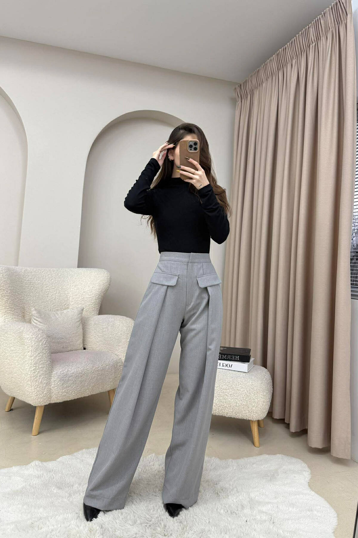 ONE COLOR SIMPLE WOMEN TROUSERS GREY/GRI