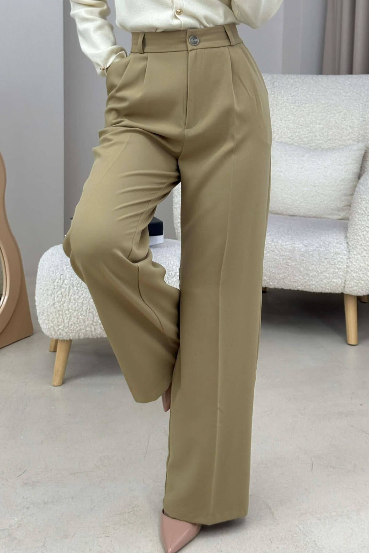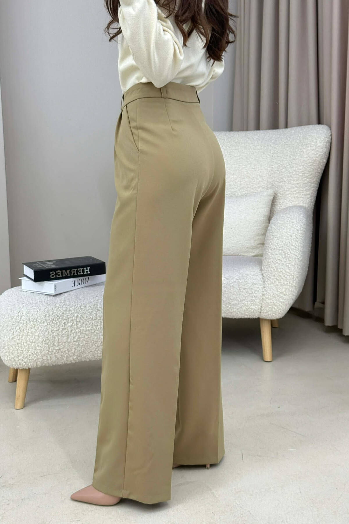 ONE COLOR WIDE LEG WOMAN TROUSERS CREAM/KREM