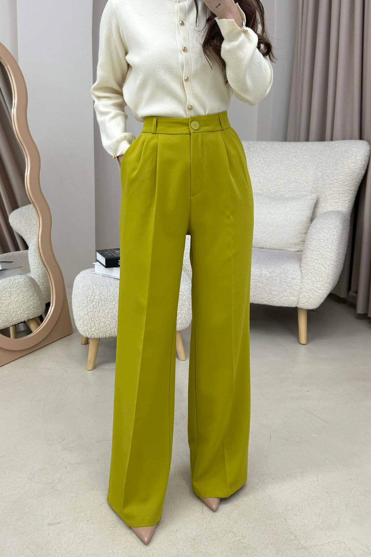 ONE COLOR SIMPLE WOMEN TROUSERS PISTACHIO