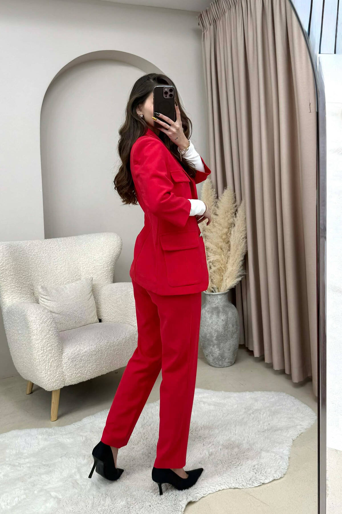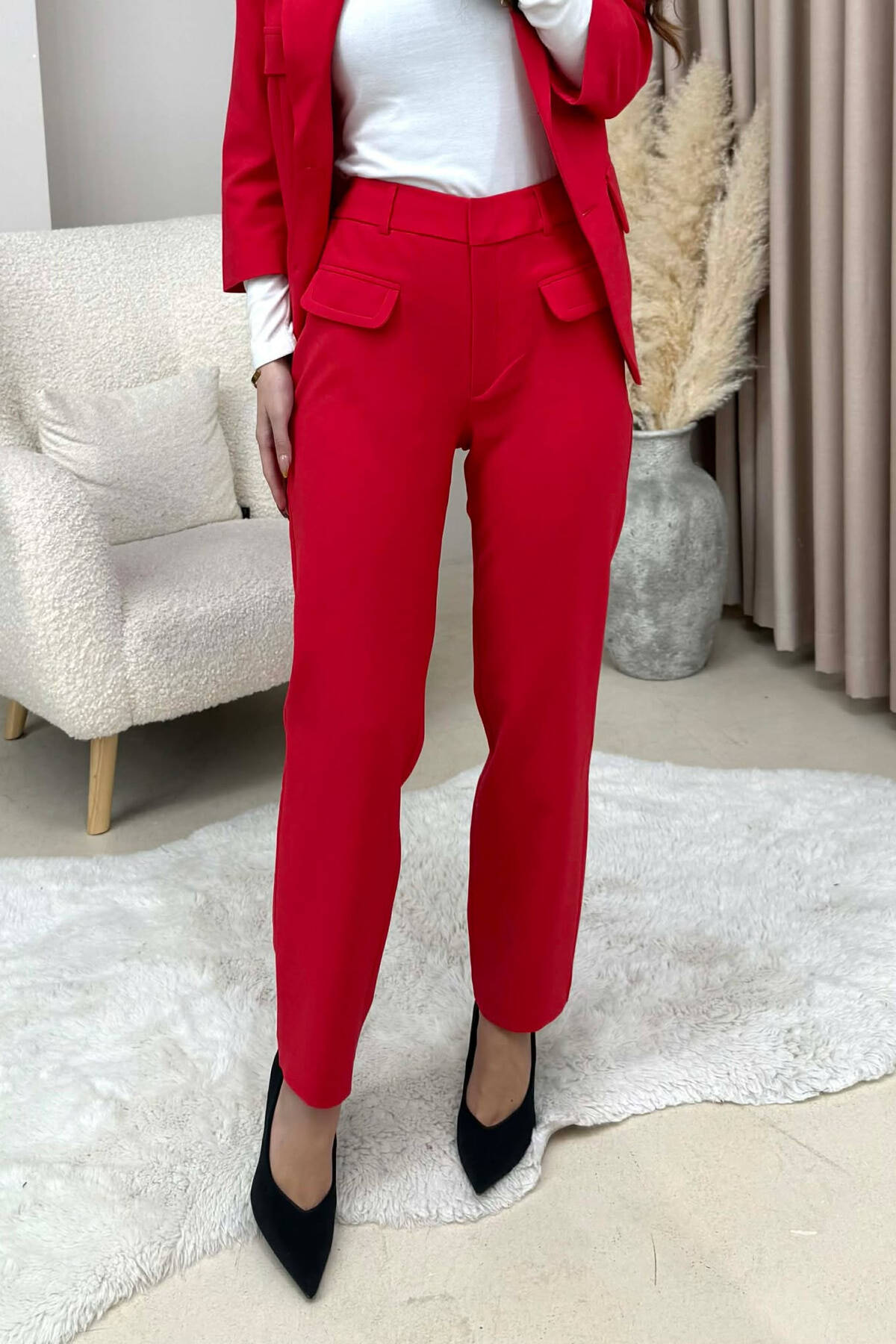 SET NJE NGJYRESH XHAKETE ME KOPSA+PANTALLONA PER FEMRA NE NGJYRE TE KUQE