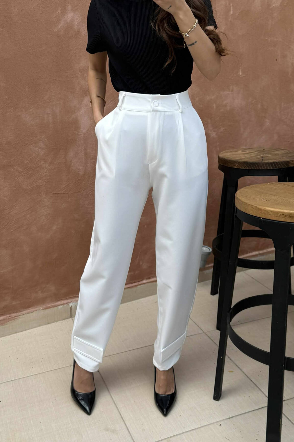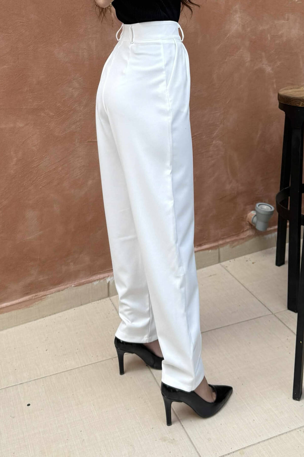 ONE COLOR SIMPLE WOMEN TROUSERS WHITE-E BARDHE