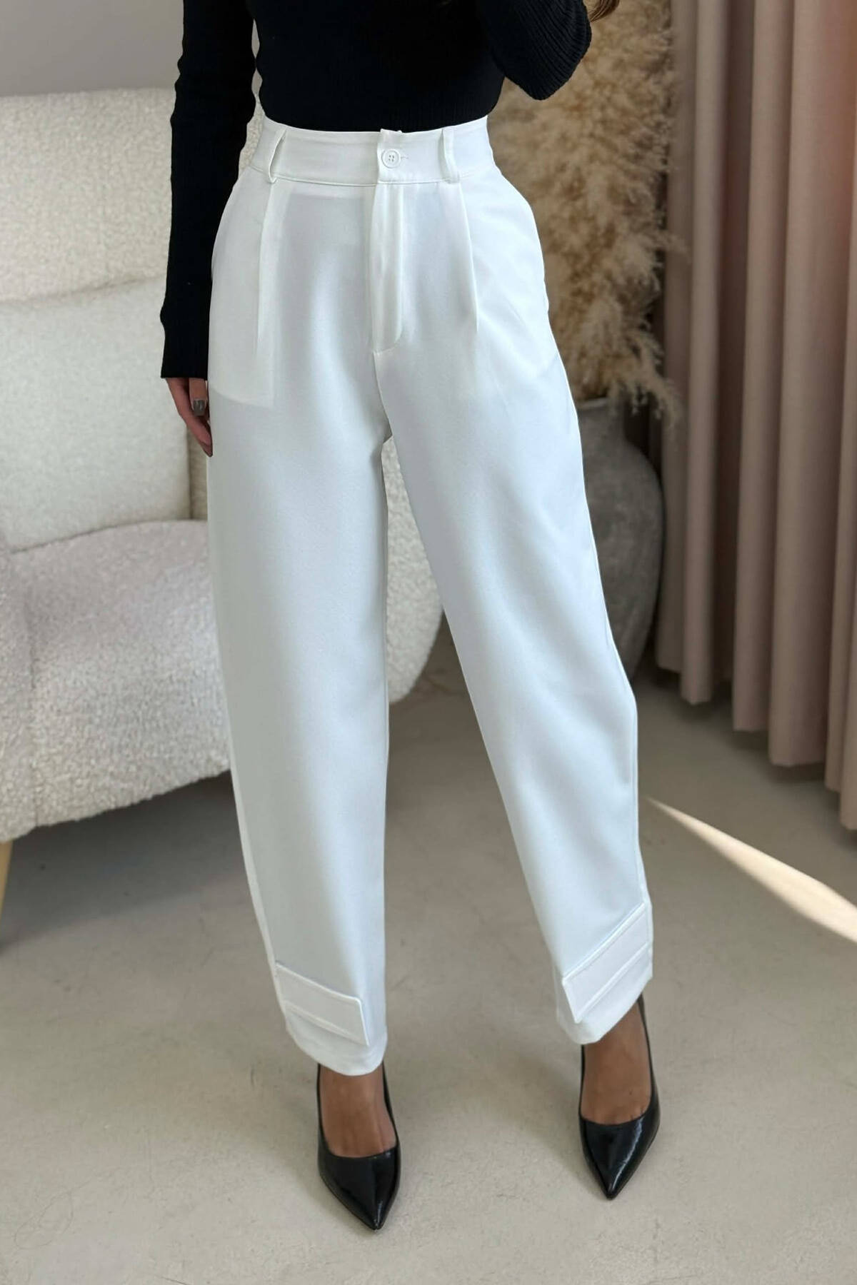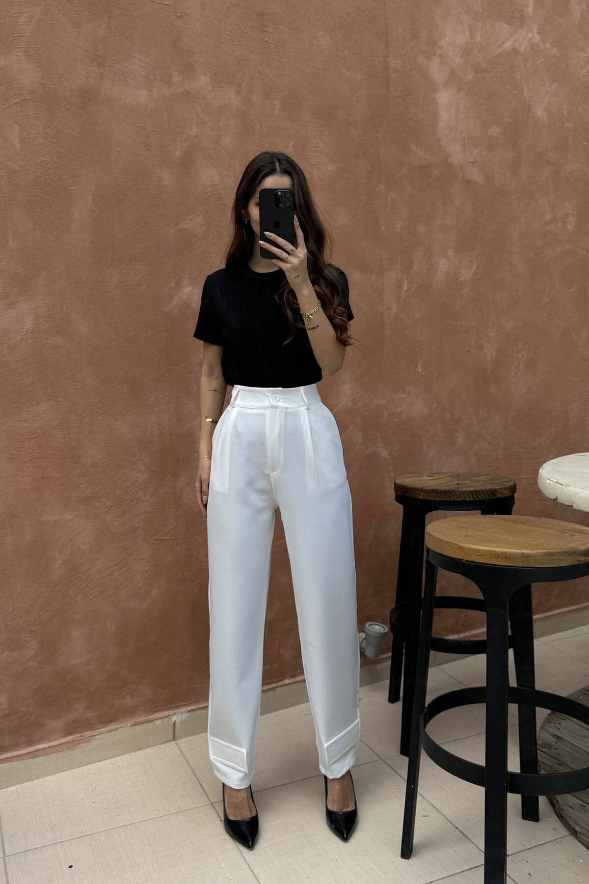 PANTALLONA TË THJESHTA NJË NGJYRËSHE PËR FEMRA NË NGJYRË TË BARDHË