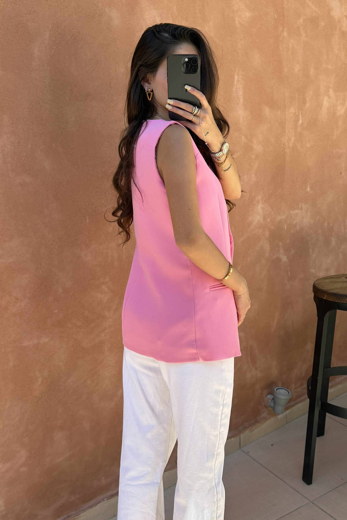 ONE COLOR SIMPLE WOMEN VEST PINK/ROZE