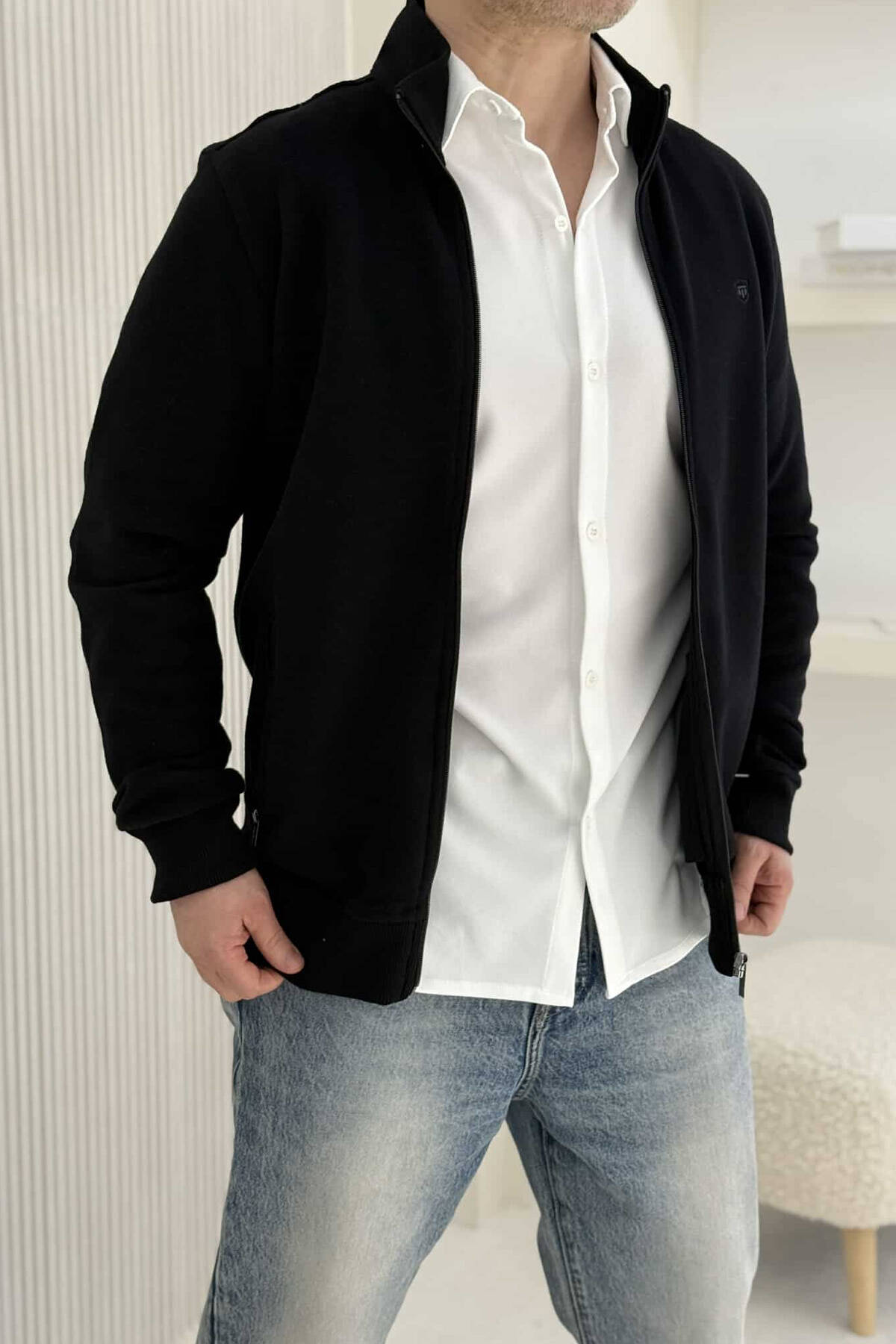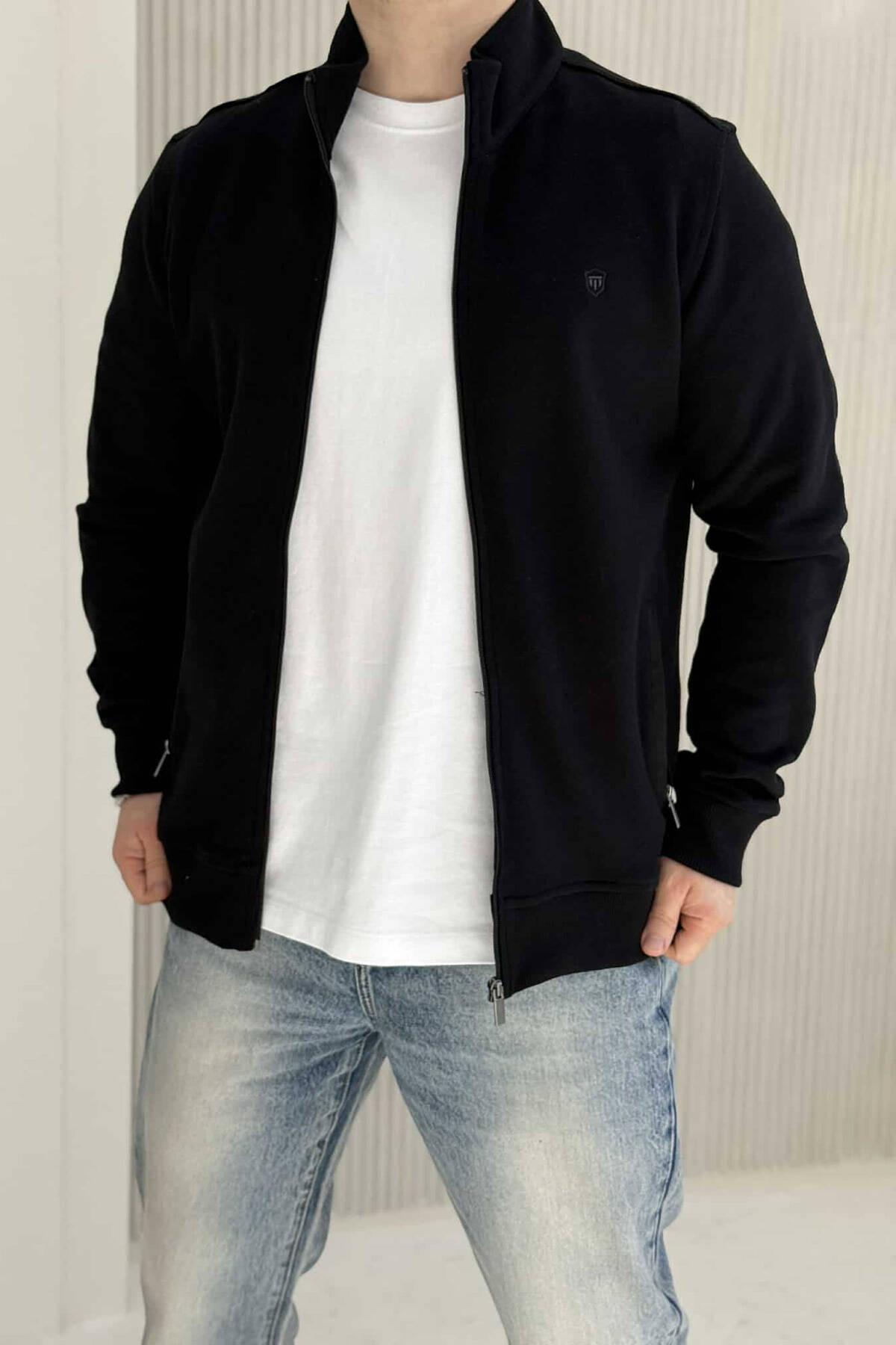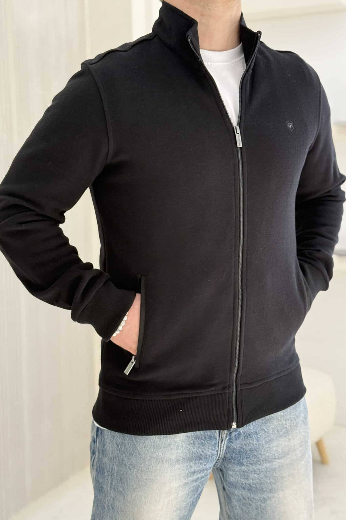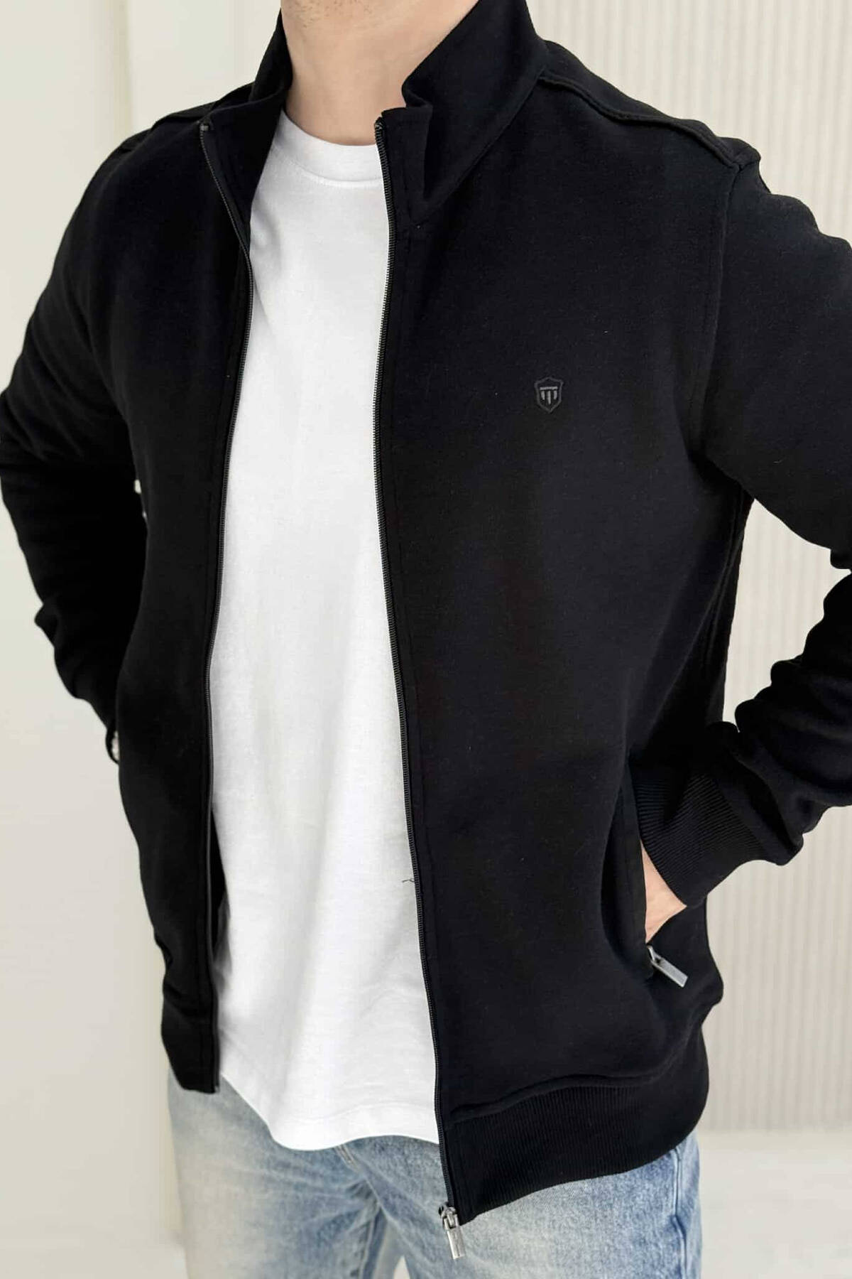 ONE COLOR SIMPLE ZIPPER MEN JACKET BLACK/ E ZEZE