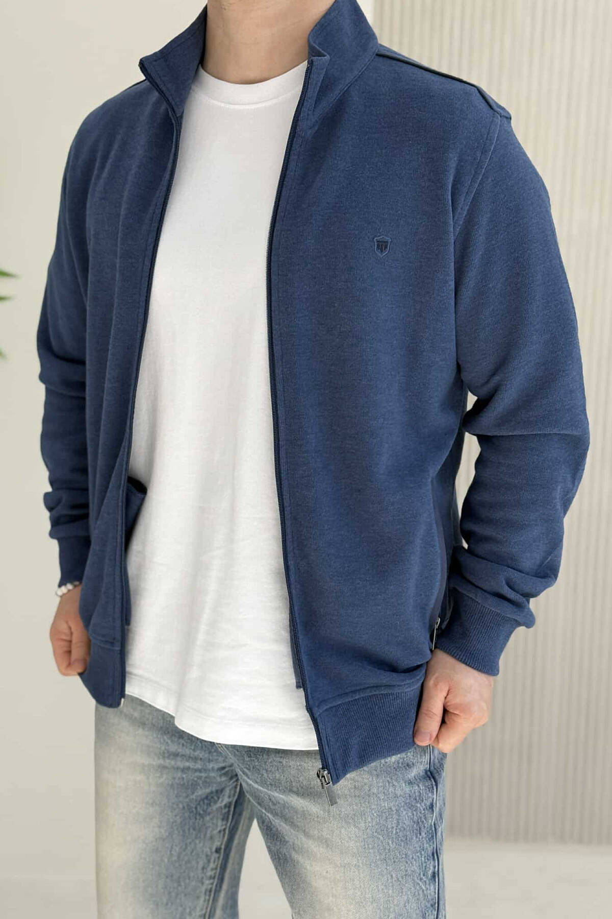 ONE COLOR SIMPLE ZIPPER MEN JACKET MIDNIGHT BLUE/BLU MESNATE