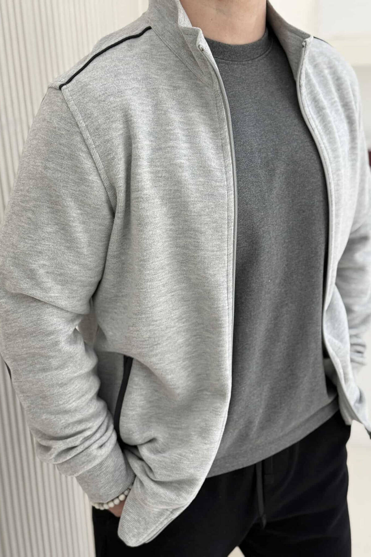 ONE COLOR SIMPLE ZIPPER MEN JACKET LIGHT GREY/GZ