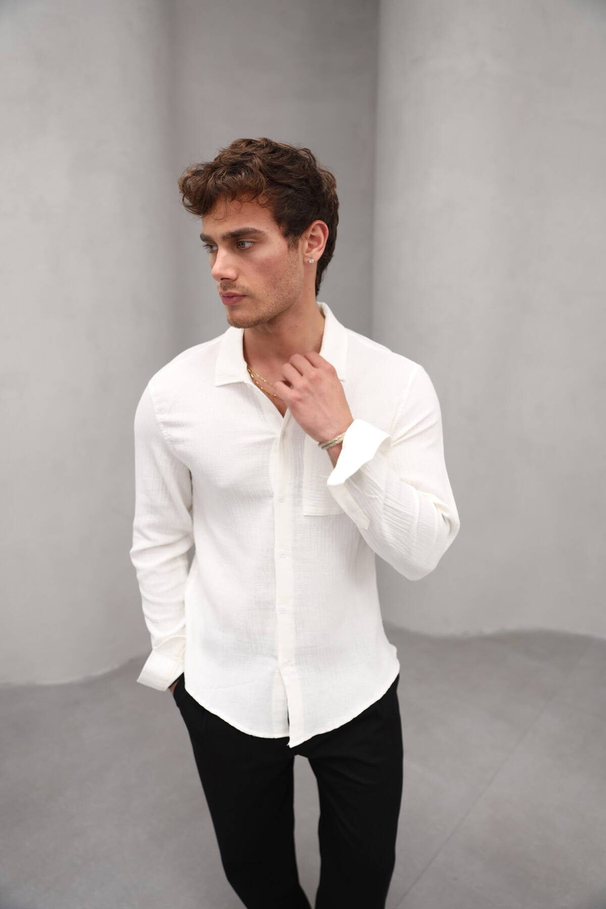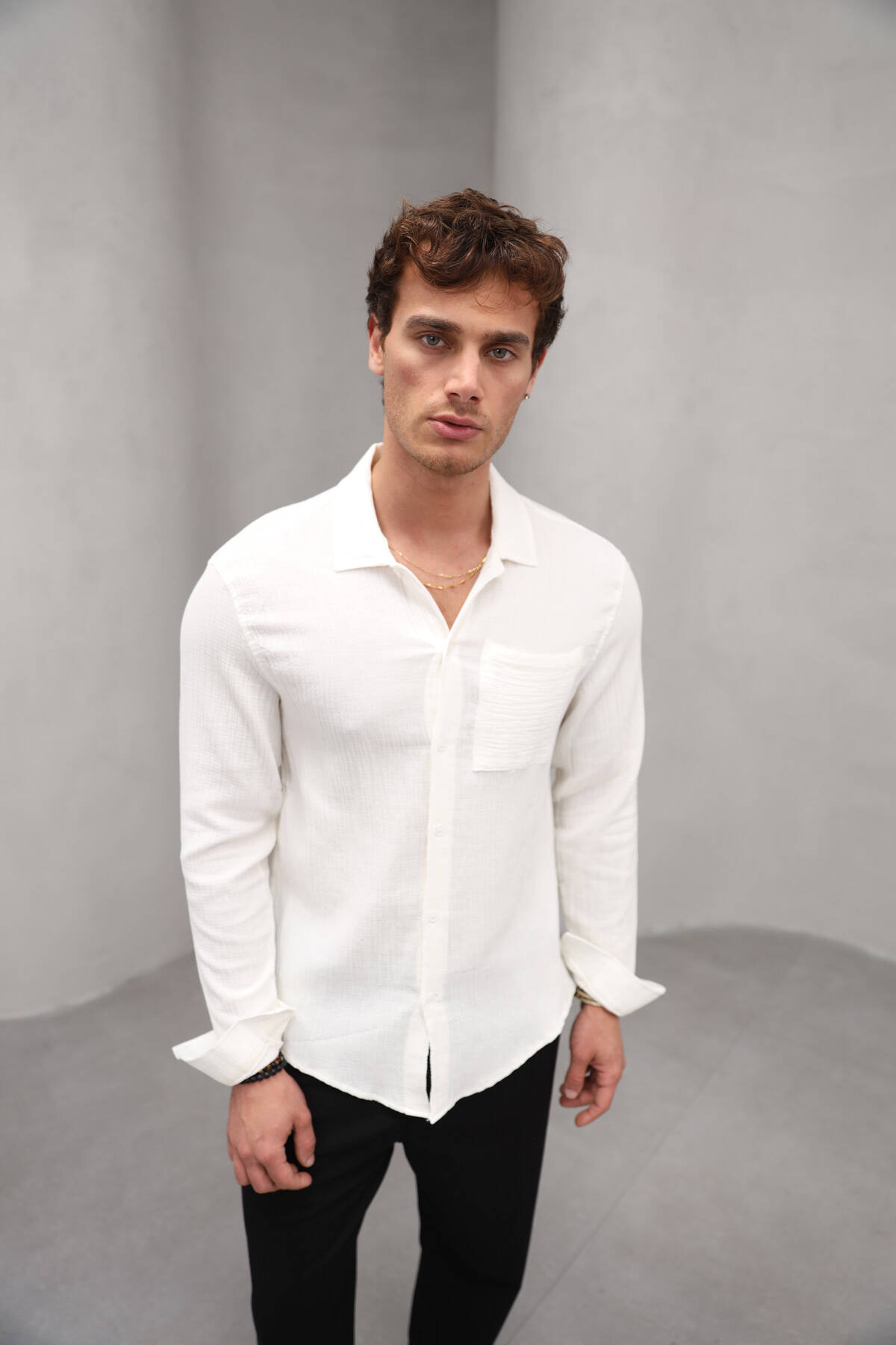 LONG SLEEVES SINGLE POCKET DETAIL MEN SHIRT WHITE-E BARDHE