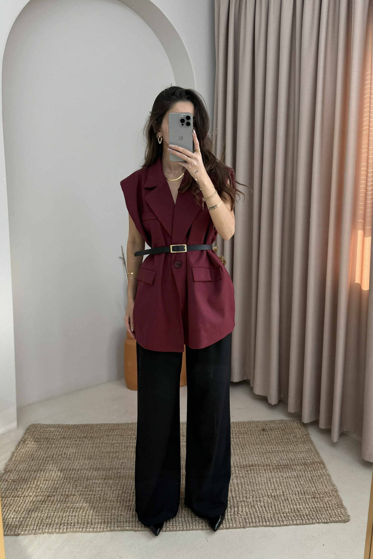 XHAKETË NJË NGJYRËSHE PA MËNGË PËR FEMRA NË NGJYRËN VISHNJË