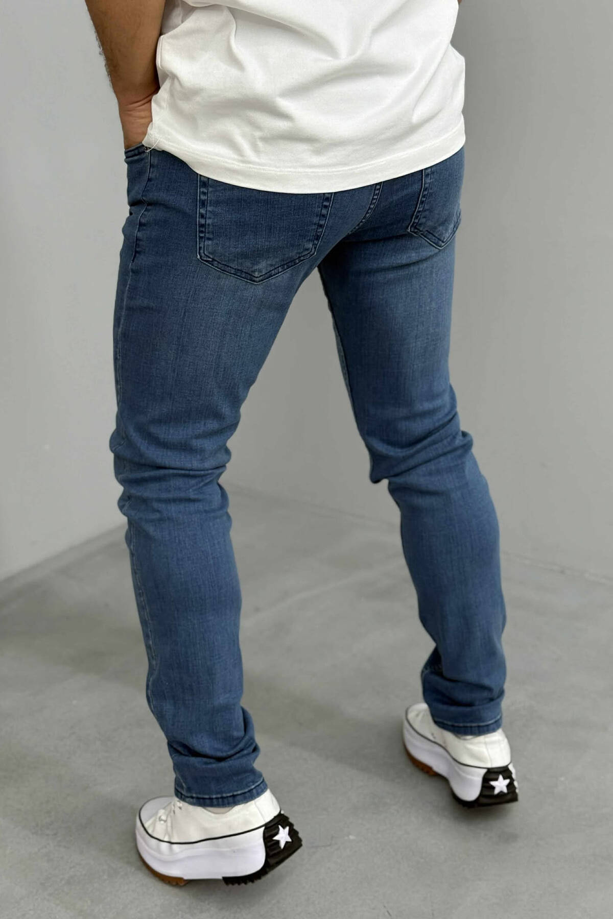 ONE COLOR STRETCHY MEN JEANS BLUE/BLU
