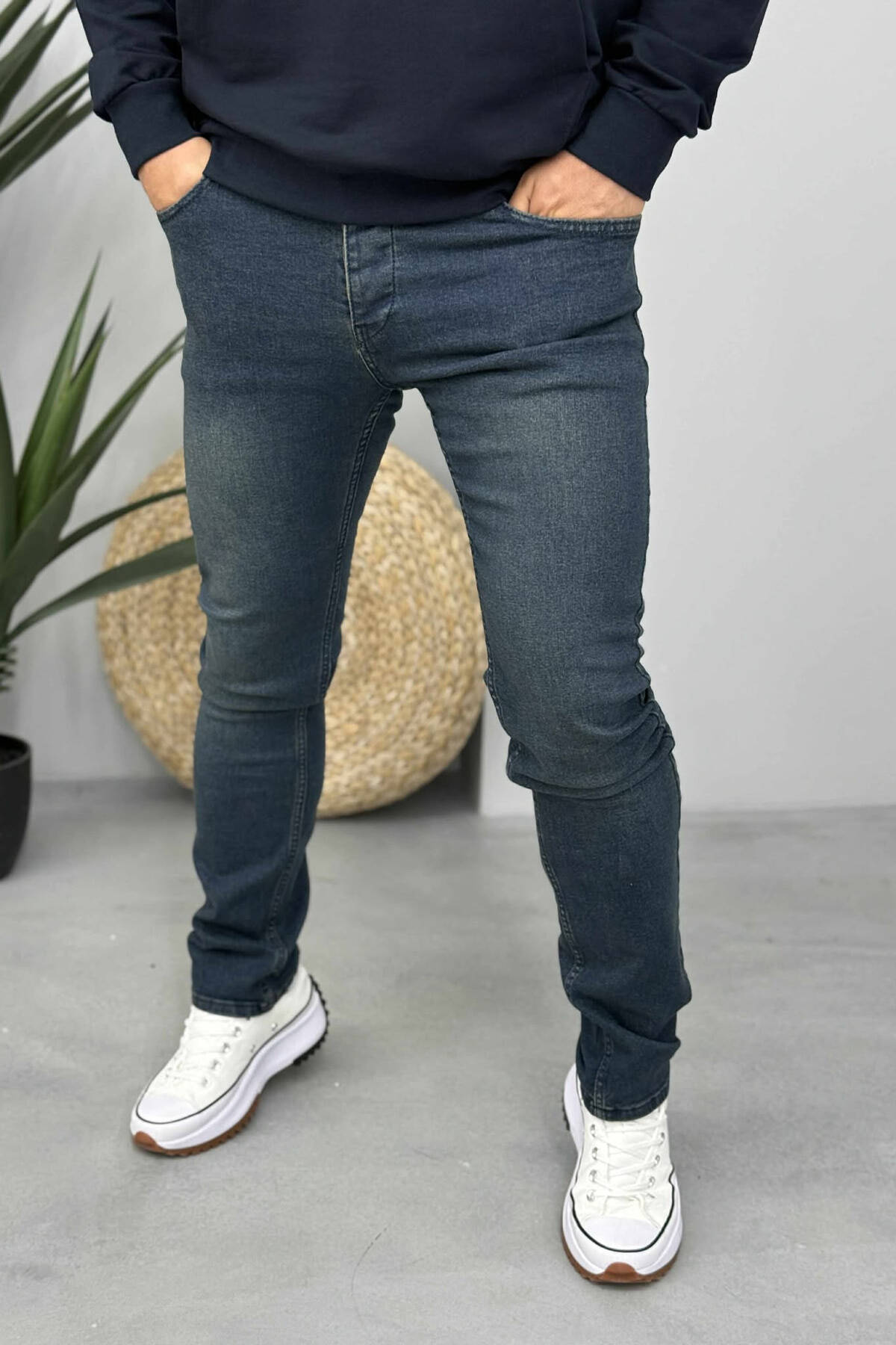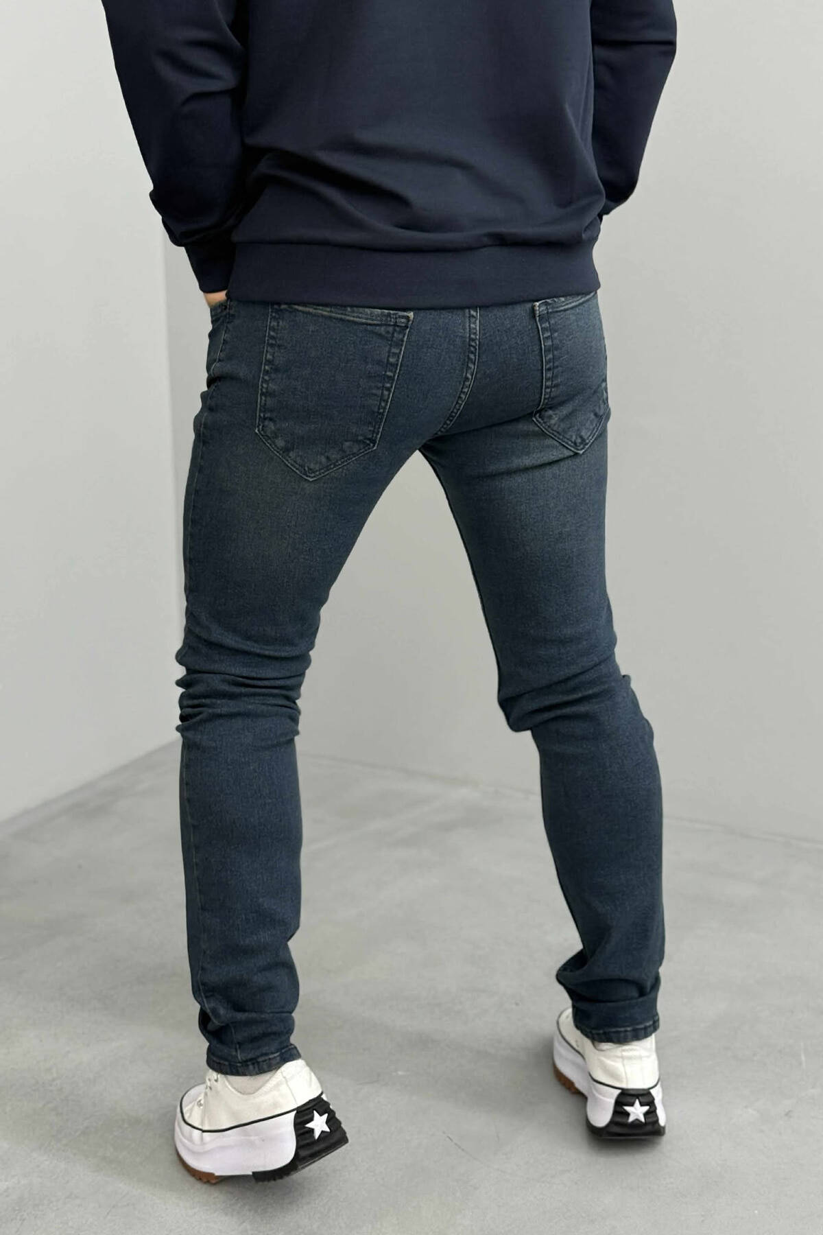 XHINSE TË THJESHTA NJË NGJYRËSHE ME ELASTICITET PËR MESHKUJ NË NGJYRË BLU