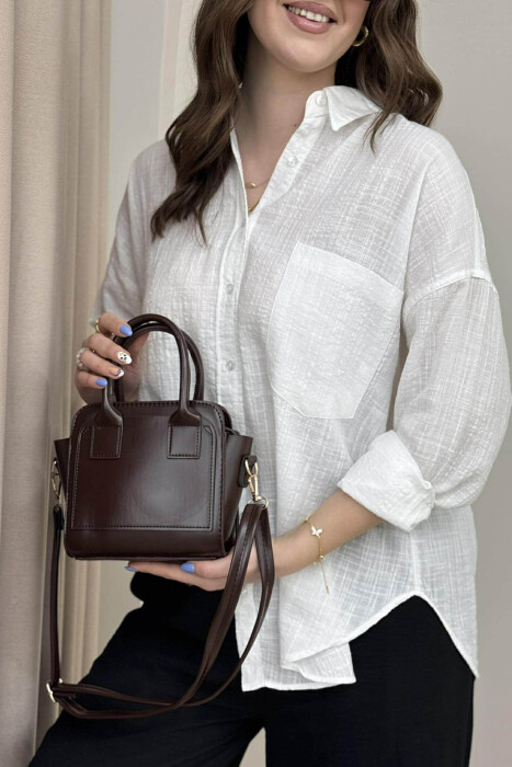 ÇANTË E VOGËL NJË NGJYRËSHE PËR FEMRA NË NGJYRËN KAFE E ERRËT