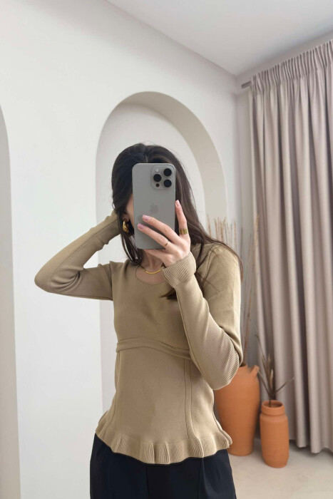 ONE COLOR SQUARE NECK WOMEN SWEATER DARK BEIGE/BEZHE ERRET