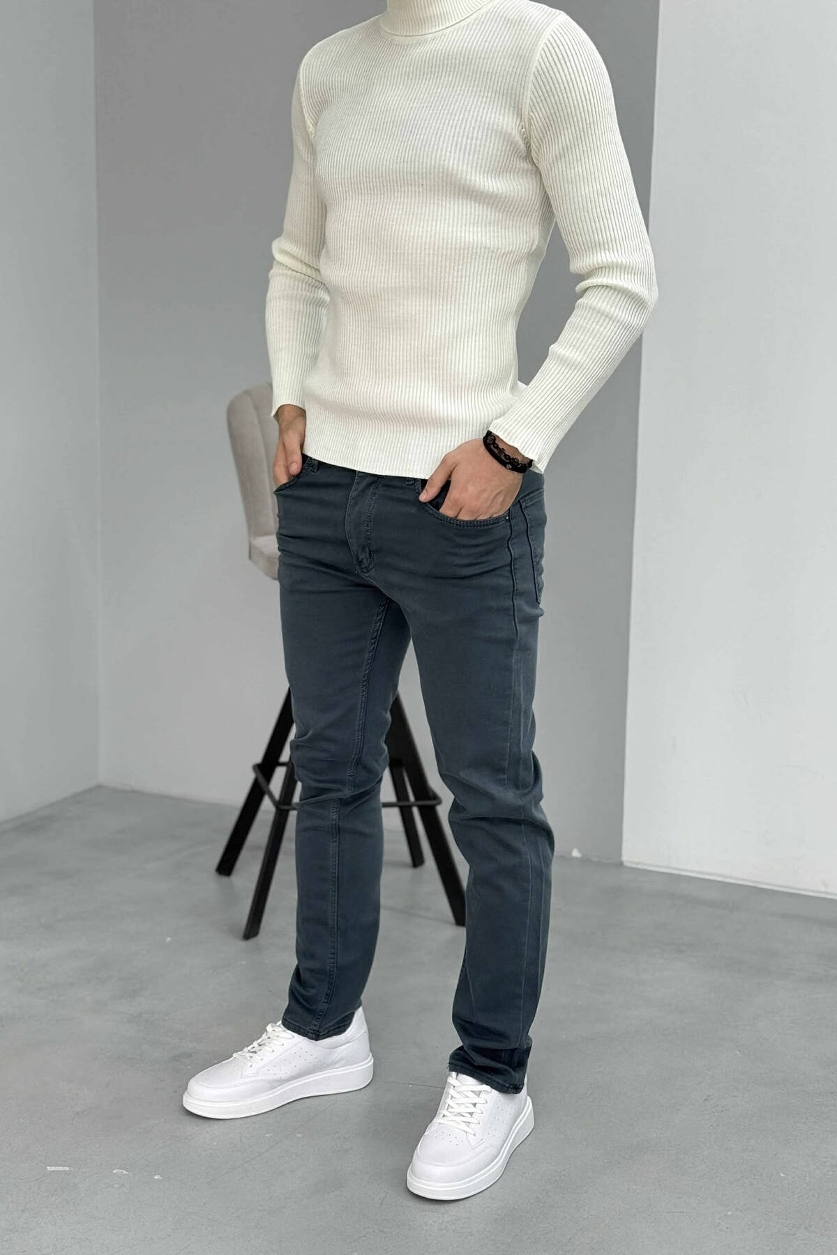 XHINSE TË THJESHTA NJË NGJYRËSHE ME ELASTICITET PËR MESHKUJ NË NGJYRË BLU