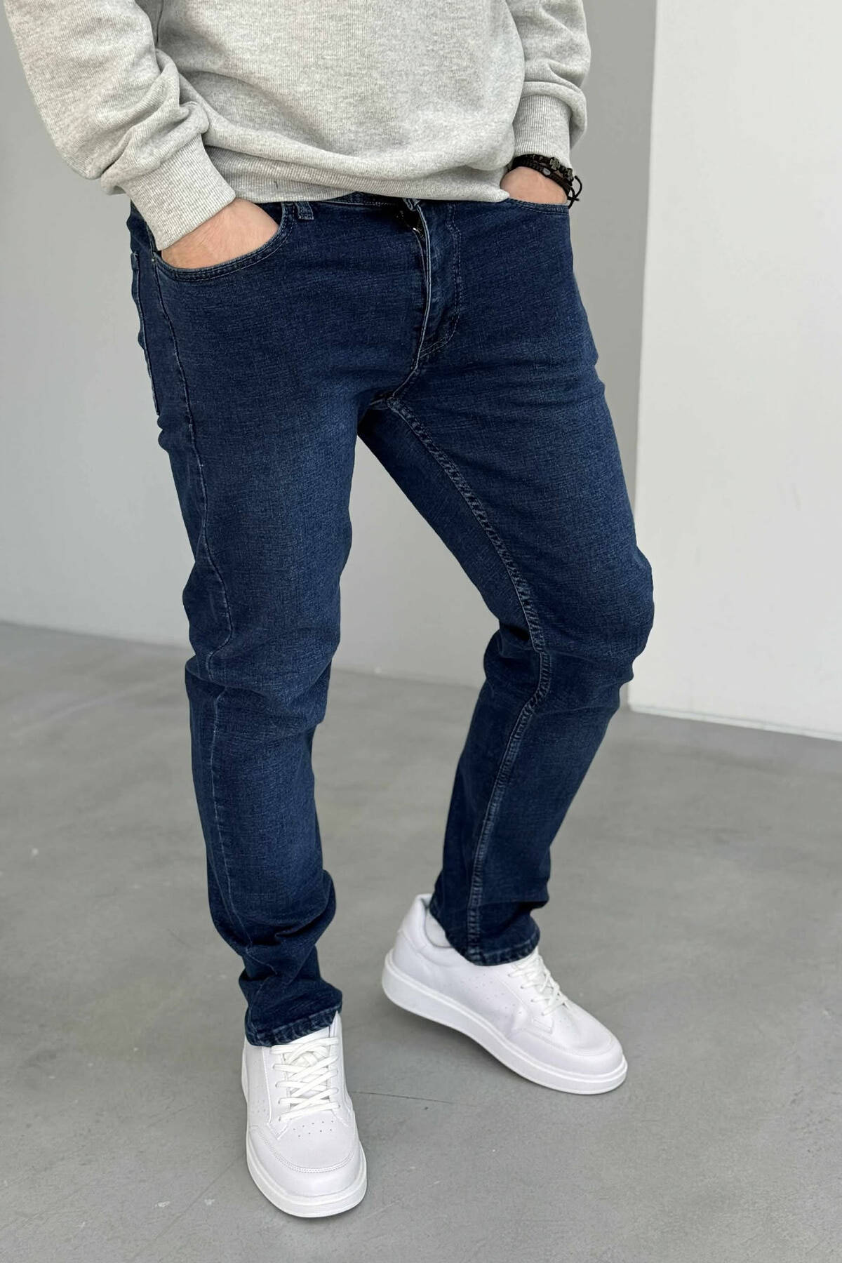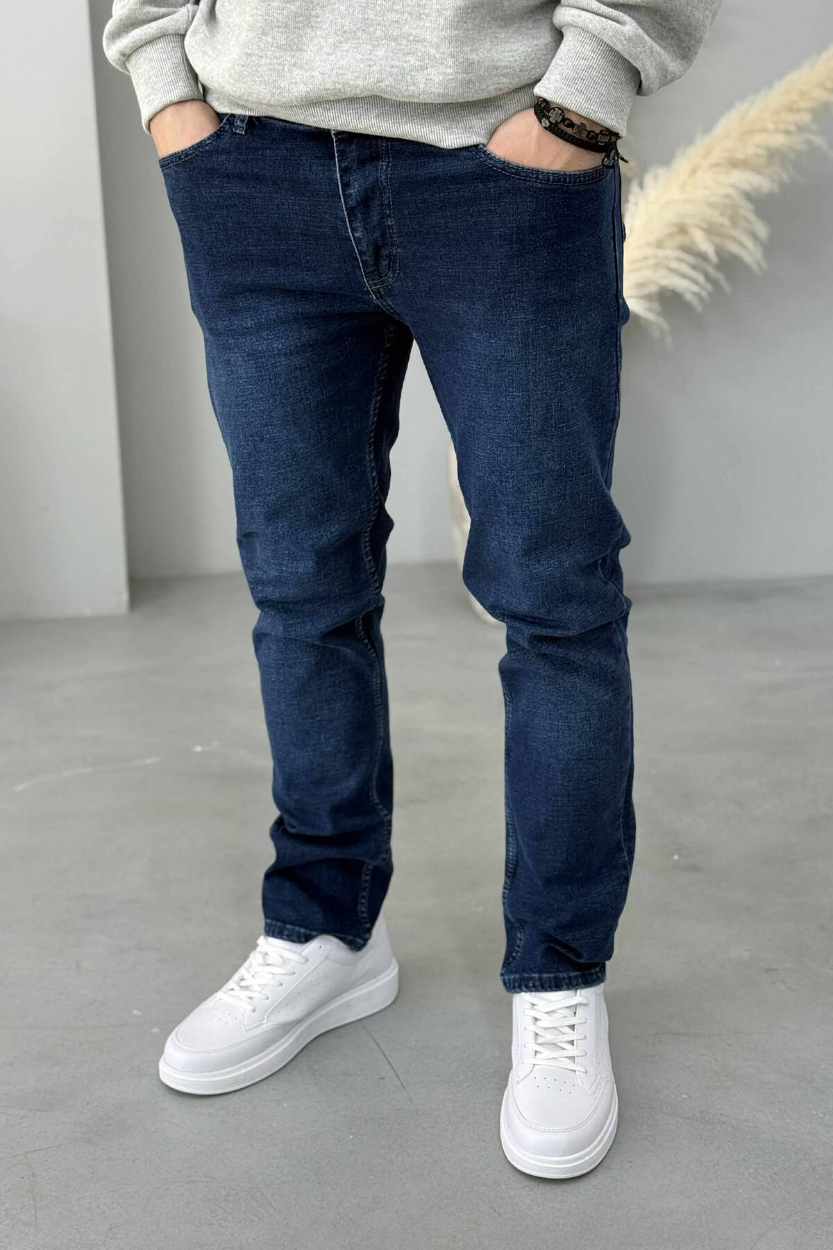 ONE COLOR STRETCHY MEN JEANS DARK BLUE/BEE