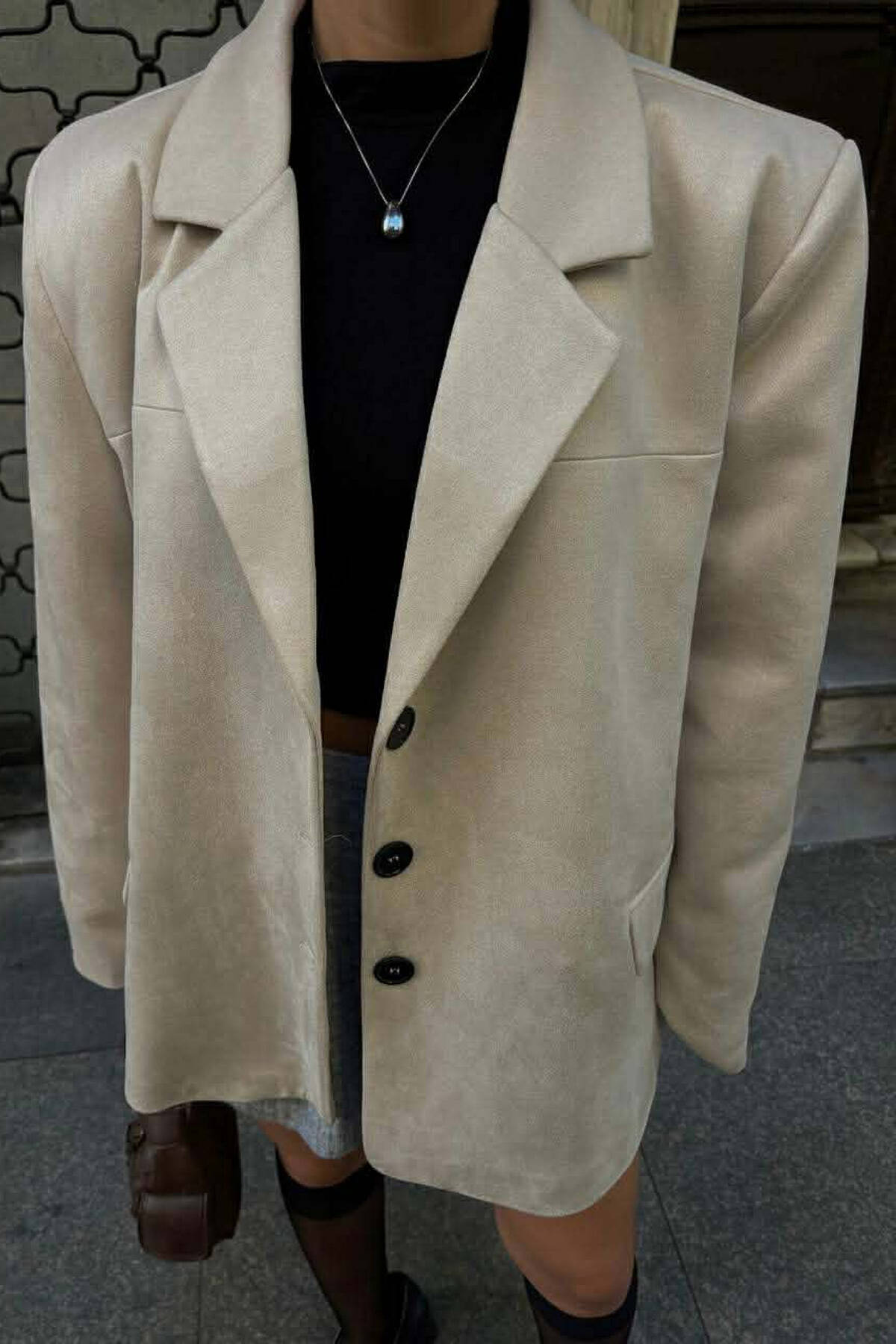 ONE COLOR SUEDE CLASSIC WOMEN JACKET CREAM/KREM