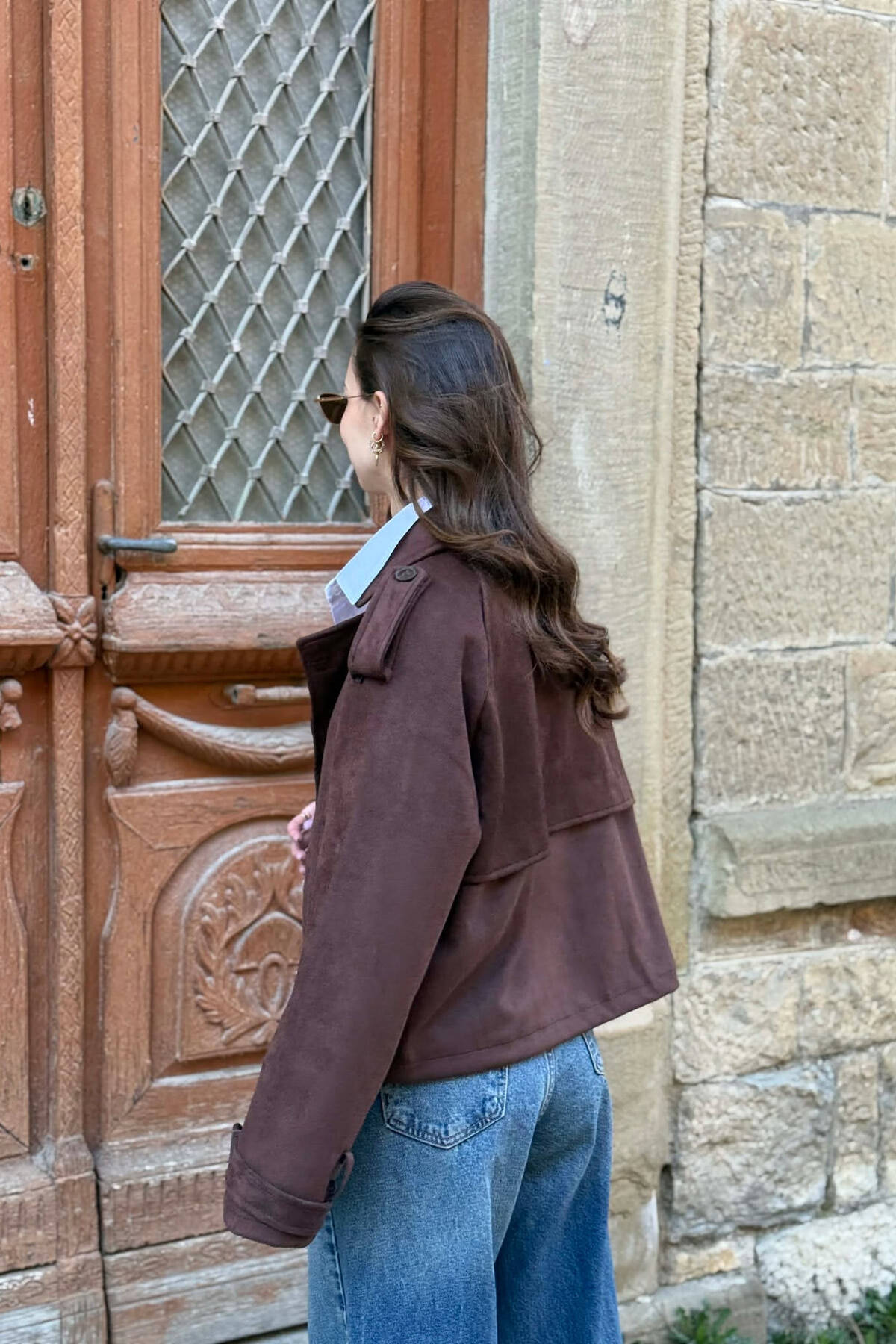 ONE COLOR SUEDE SIMPLE WOMEN JACKET DARK BROWN/KAE