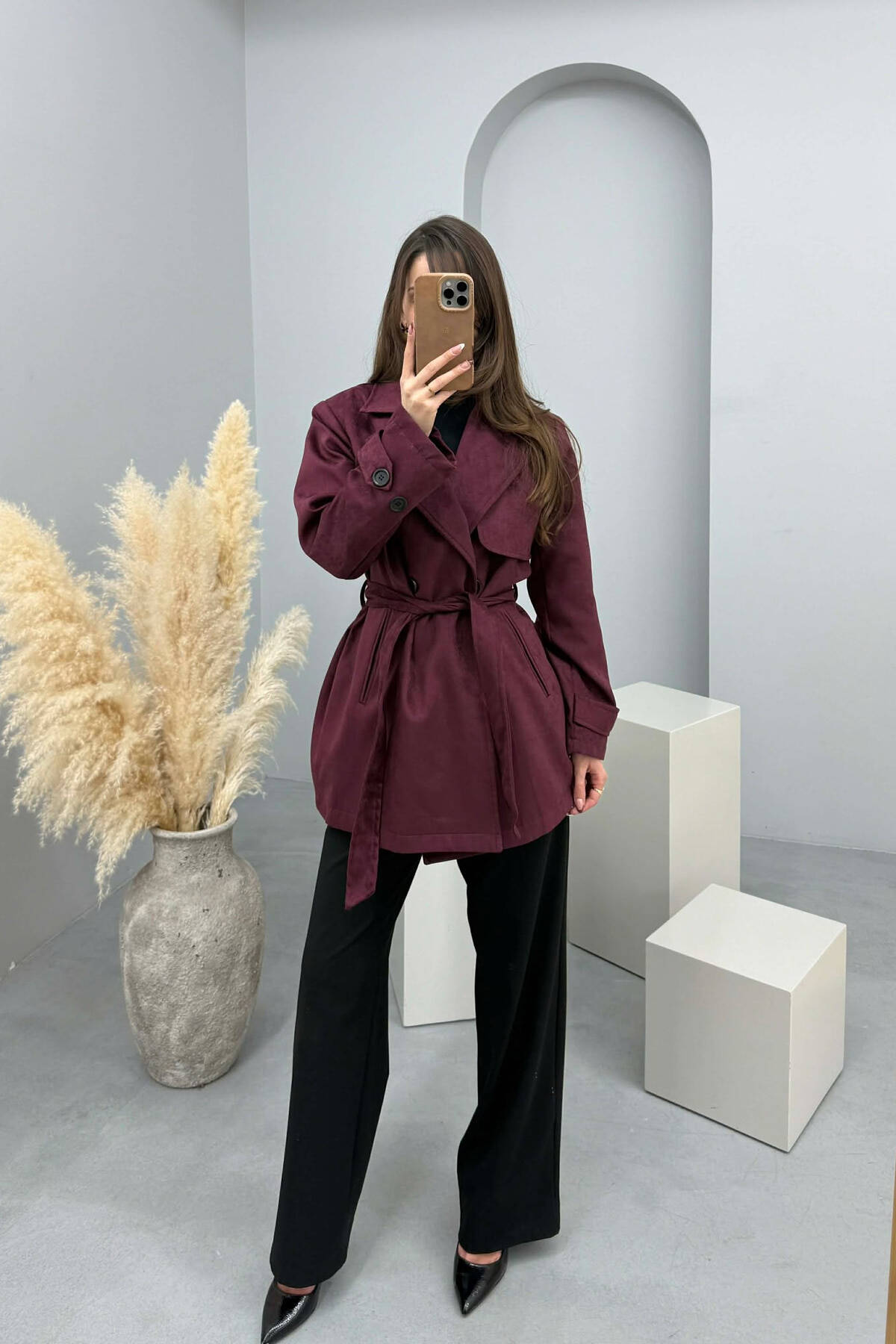 PALLTO NJE NGJYRESHE KAMOSH PER FEMRA NE NGJYRE VISHNJE TE ERRET