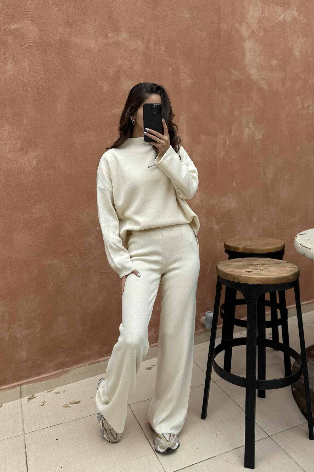 ONE COLOR SWEATER+TROUSERS KNIT WOMEN SET CREAM/KREM