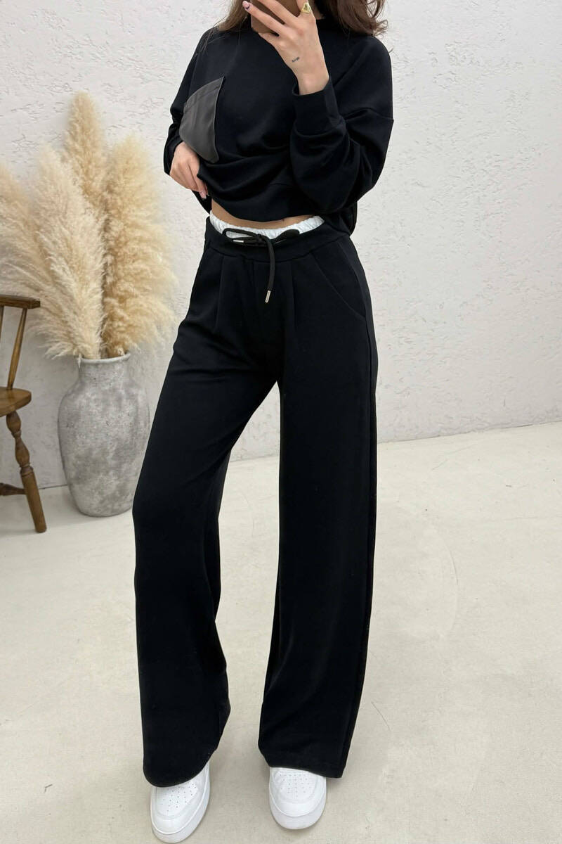 ONE COLOR SWEATSHIRT + SWEATPANTS WOMAN SET BLACK/ E ZEZE