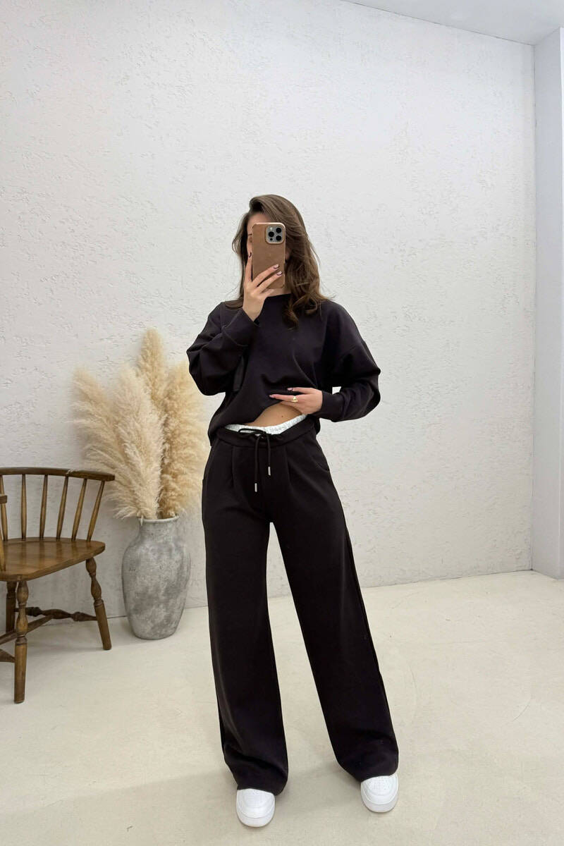 ONE COLOR SWEATSHIRT + TROUSERS WOMAN SET BROWN/KAFE