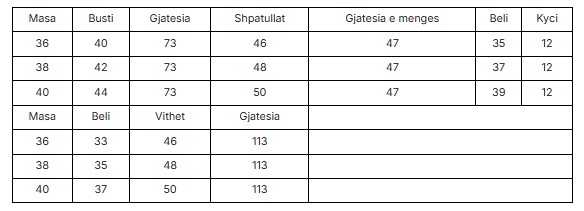 Size chart