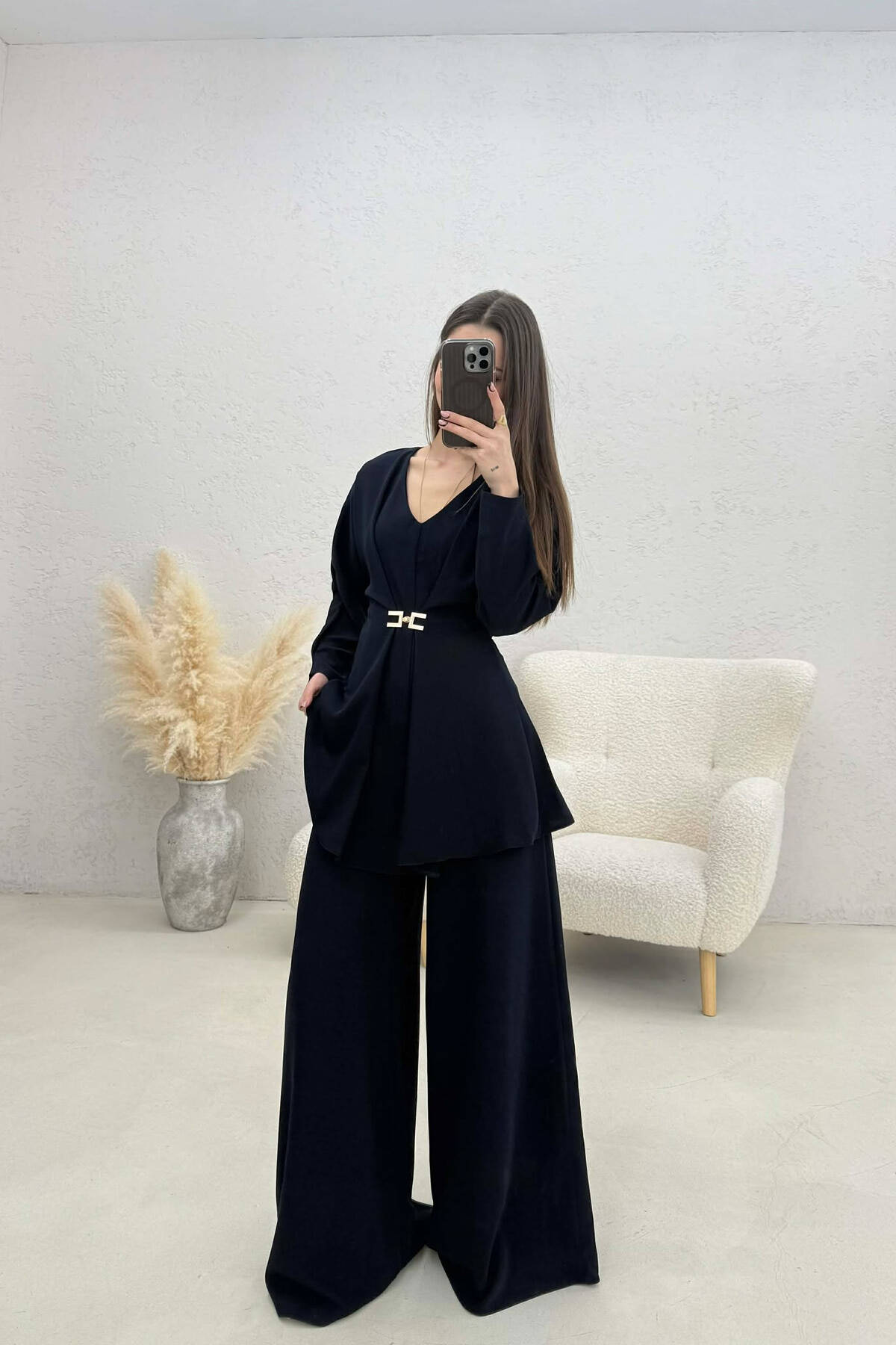 ONE COLOR SWEATSHIRT + WIDE LEG TROUSERS WOMAN SET BLACK/ E ZEZE