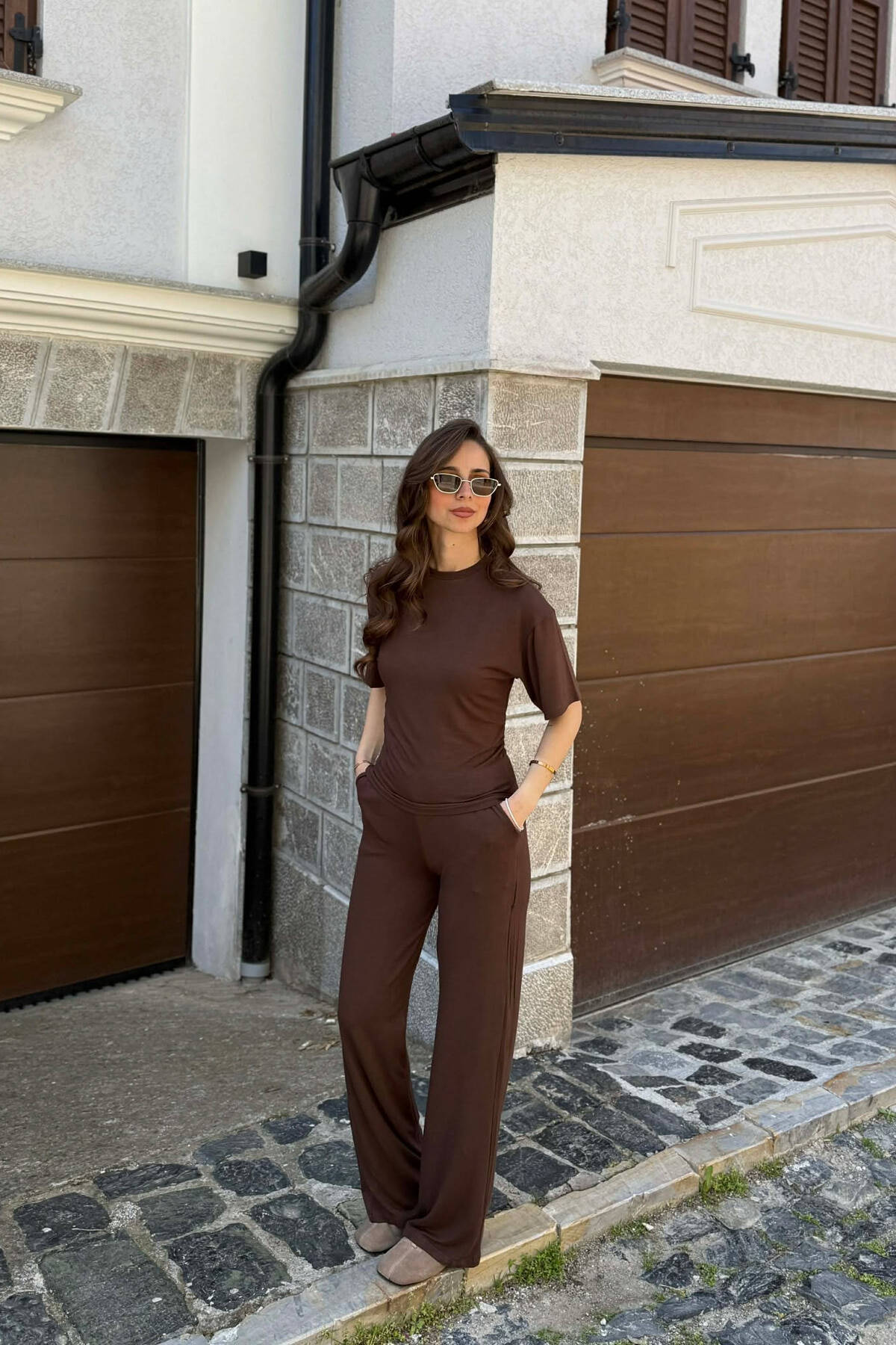 ONE COLOR T-SHIRT + SWEWTPANTS WOMAN SET BROWN/KAFE