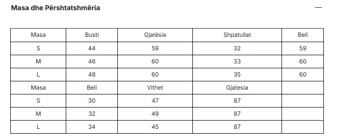 Size chart